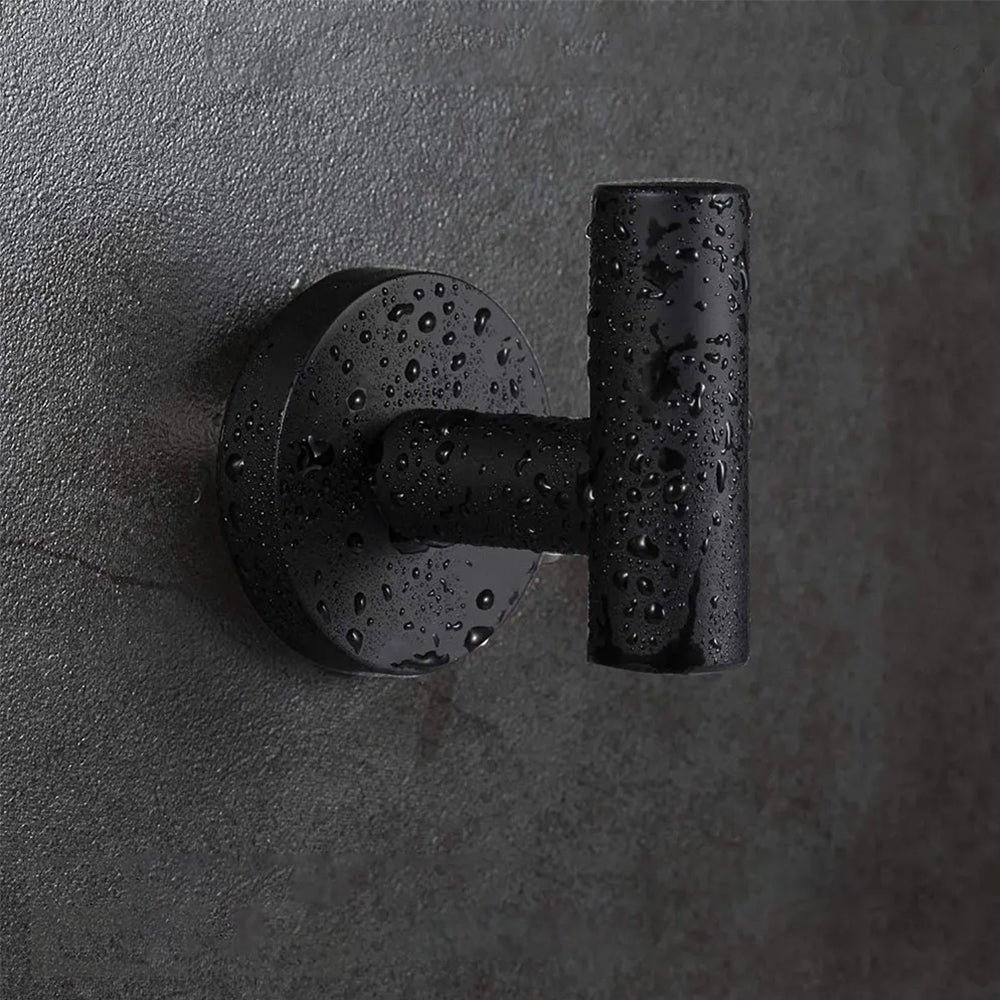 2Pcs Set Bathroom Towel Hook Wall Mounted Robes Holder Stainless Steel Clothing Hanger Black