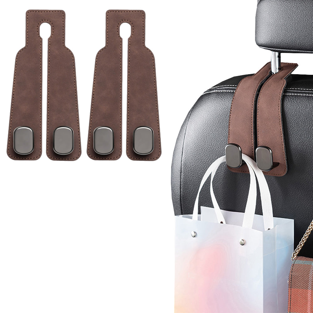 2Pcs Set Car Seat Hooks Double Hanging Hooks for Car Back Seat Headrest Hooks Brown