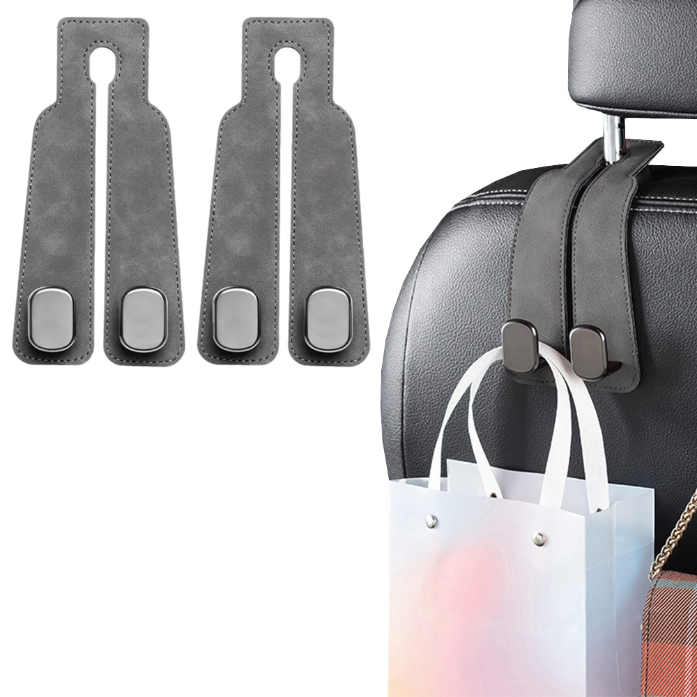 2Pcs Set Car Seat Hooks Double Hanging Hooks for Car Back Seat Headrest Hooks Grey