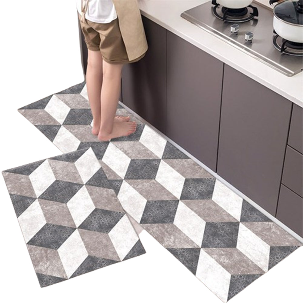 2Pcs Set Non-Slip Kitchen Floor Mats Home Door Mats Easy Clean Style 2