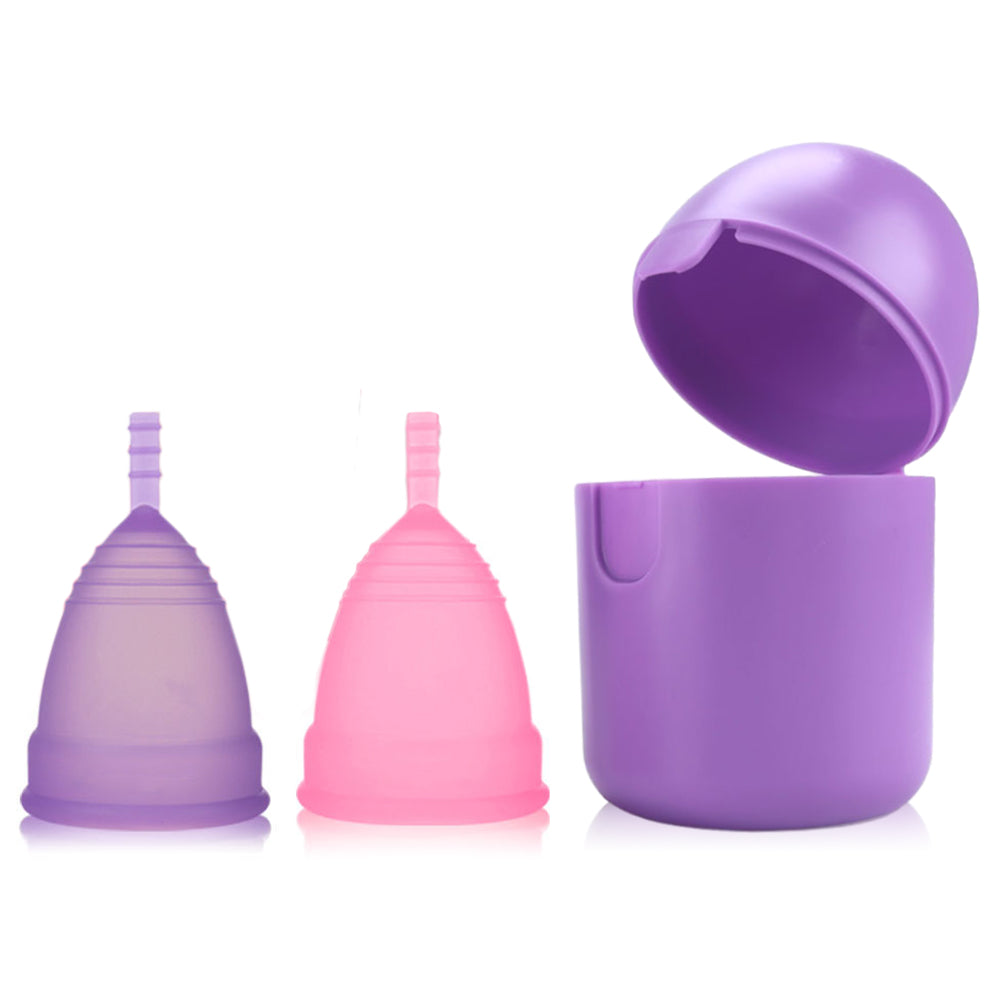 2Pcs Set Silicone Menstrual Cups Foldable Feminine Menstruation Period Cups