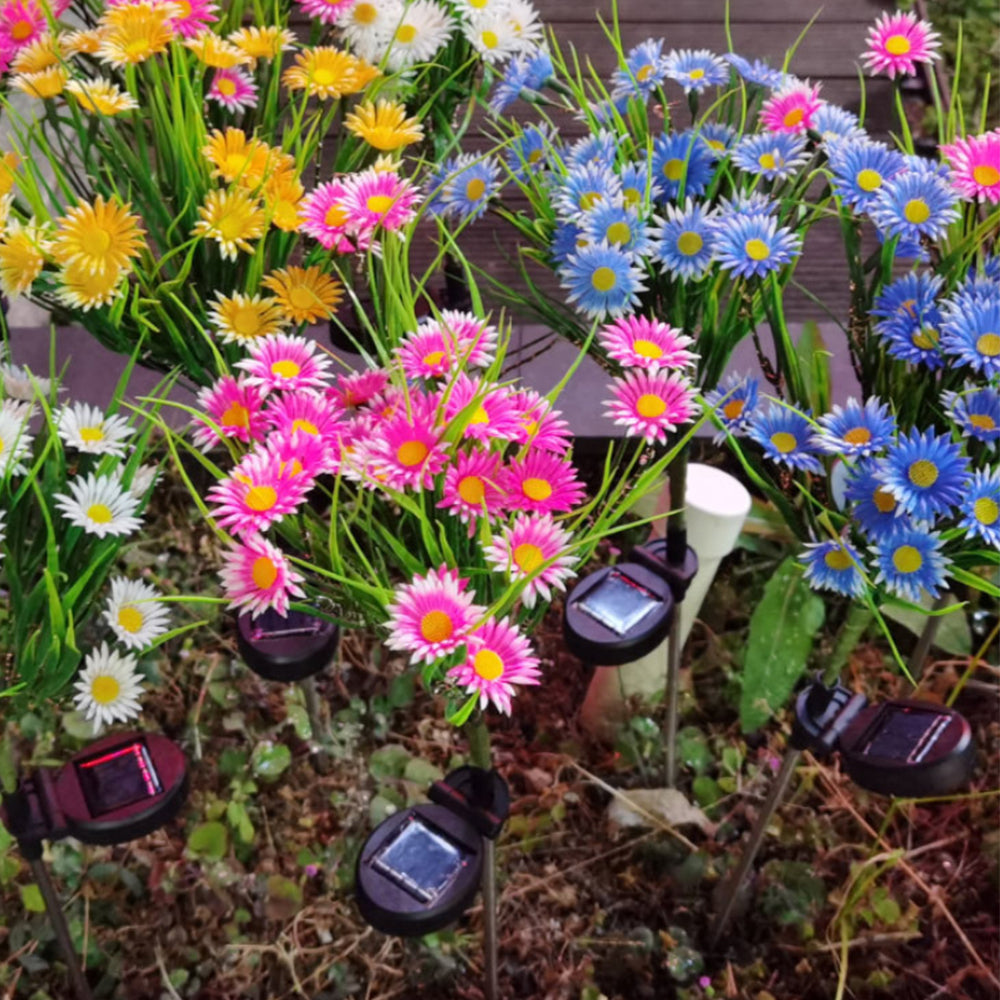 - Cute daisy design with 4 colors led lights, adding fantastic color to your garden.