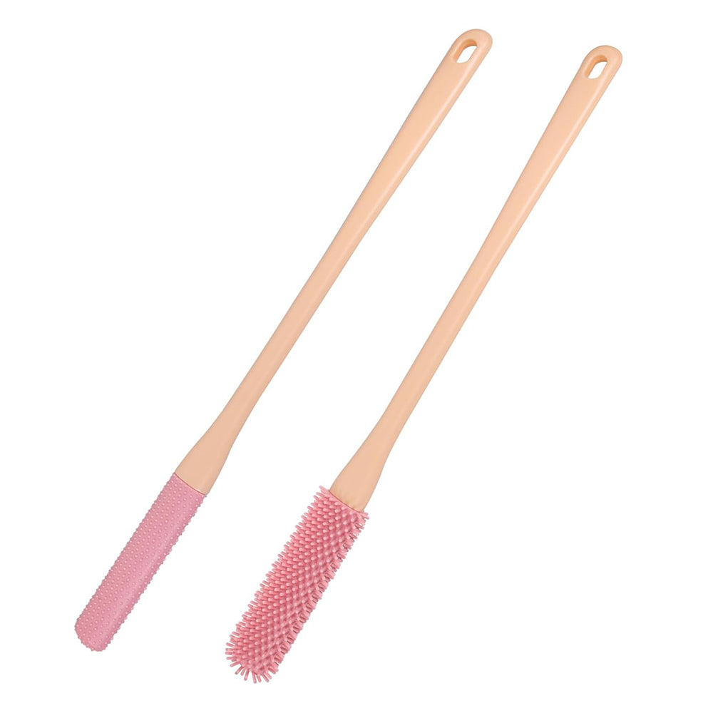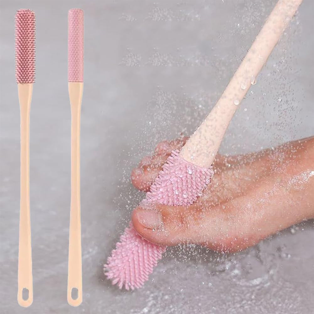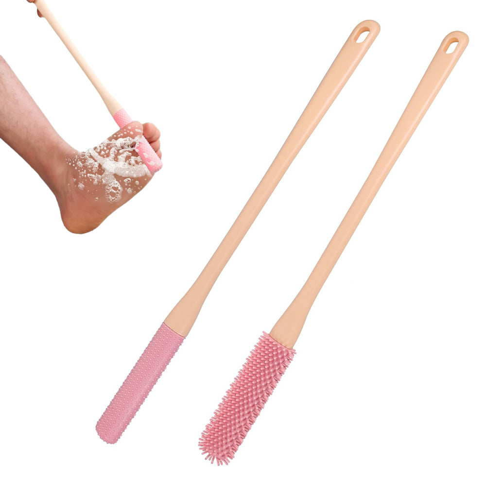 2Pcs Set Toe Cleaning Brushes Foot Scrubber with Long Handle Pink