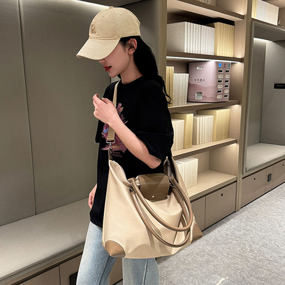 This stylish 2Pcs nylon handbag set includes a large tote and a matching smaller bag, perfect for travel, fitness, commuting, and daily use.