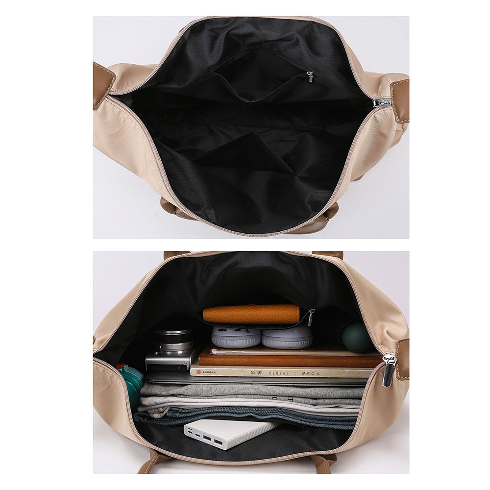 - The tote bag features comfortable handles, ensuring easy carrying even over long periods. The smooth zipper and spacious capacity allow you to fit clothes, shoes, toiletries, a foldable umbrella, and more. Additionally, the interior includes two small pockets for easy storage of keys, wallets, and other small items.