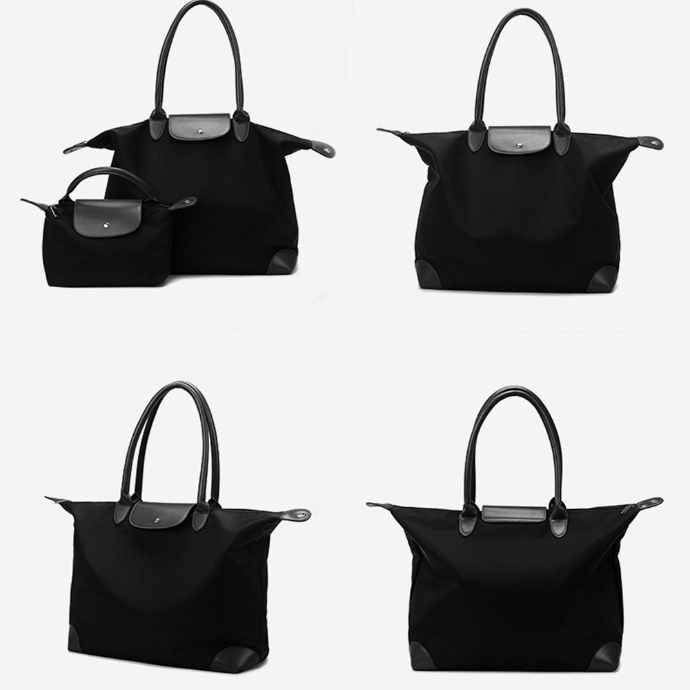 This stylish 2Pcs nylon handbag set includes a large tote and a matching smaller bag, perfect for travel, fitness, commuting, and daily use.
