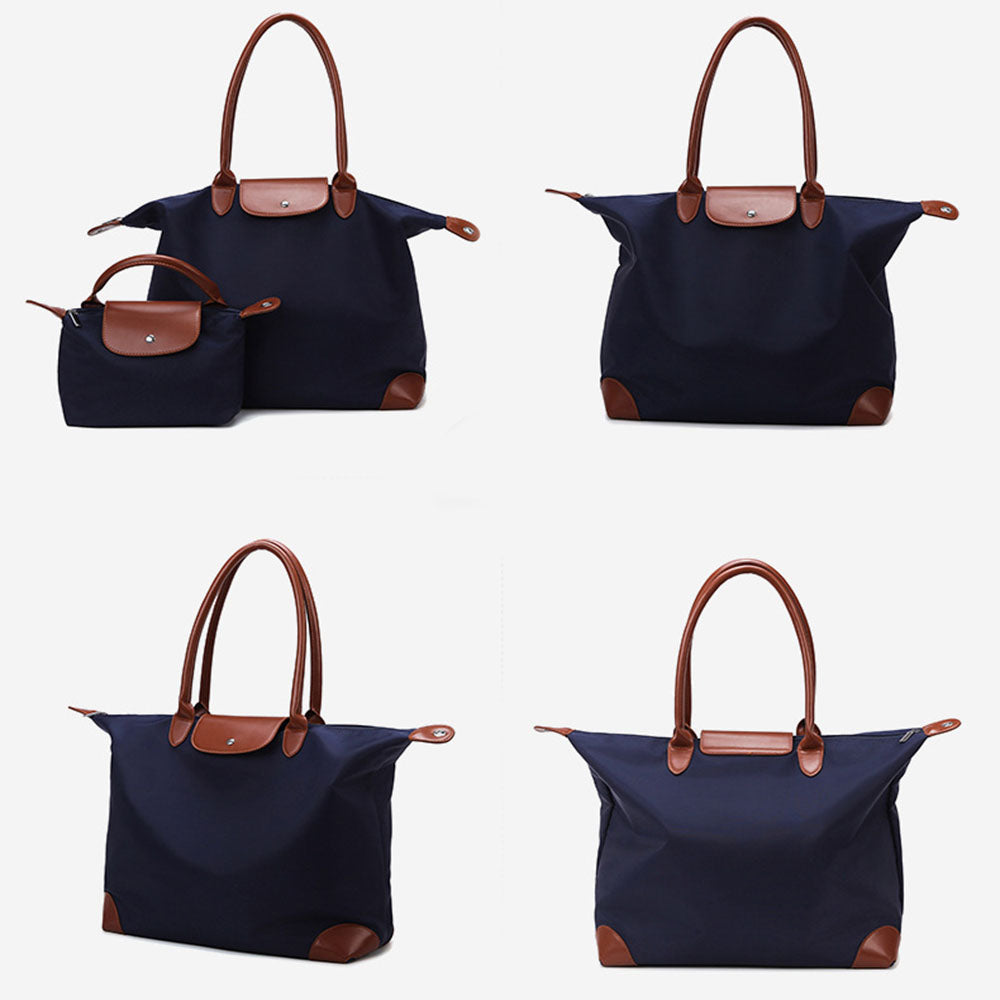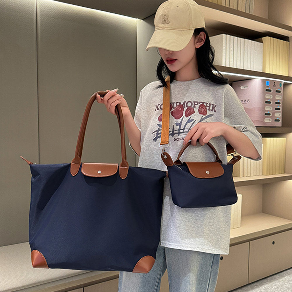 This stylish 2Pcs nylon handbag set includes a large tote and a matching smaller bag, perfect for travel, fitness, commuting, and daily use.