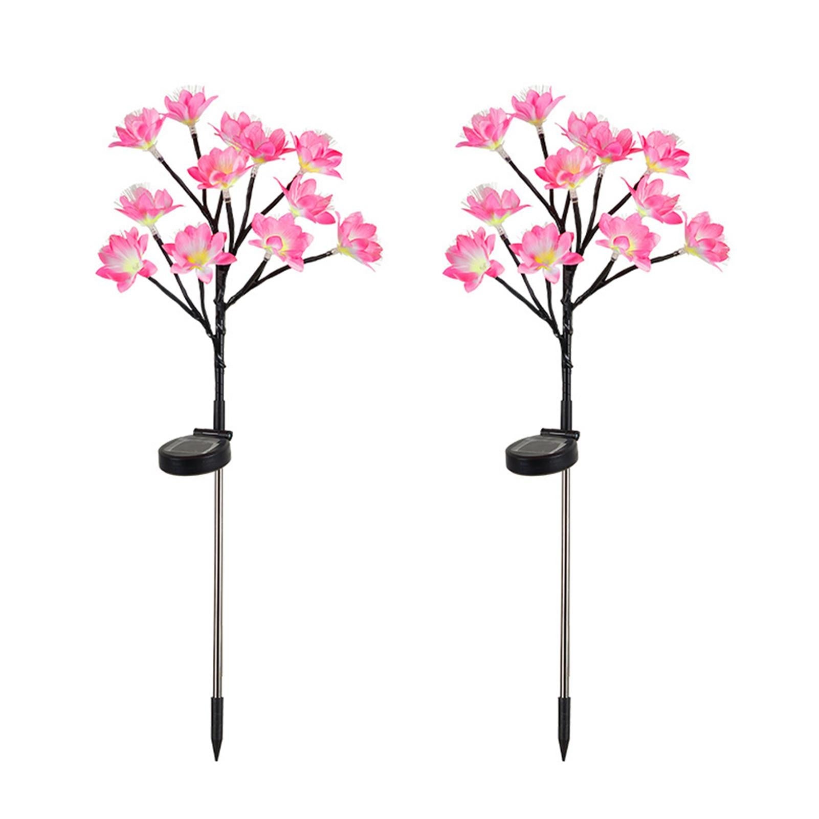 2pcs Solar Garden Lights Orchid Flower Outdoor Stake Solar Powered Landscape Lights -Warm White