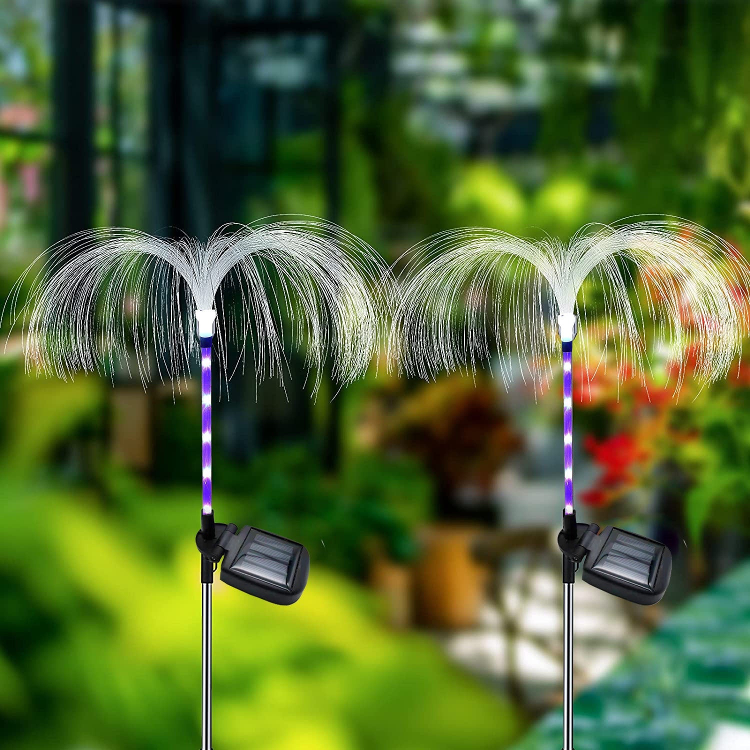 2Pcs Solar Jellyfish Lights RGB Fiber Optic Light Outdoor Ground Lamp Garden Decor