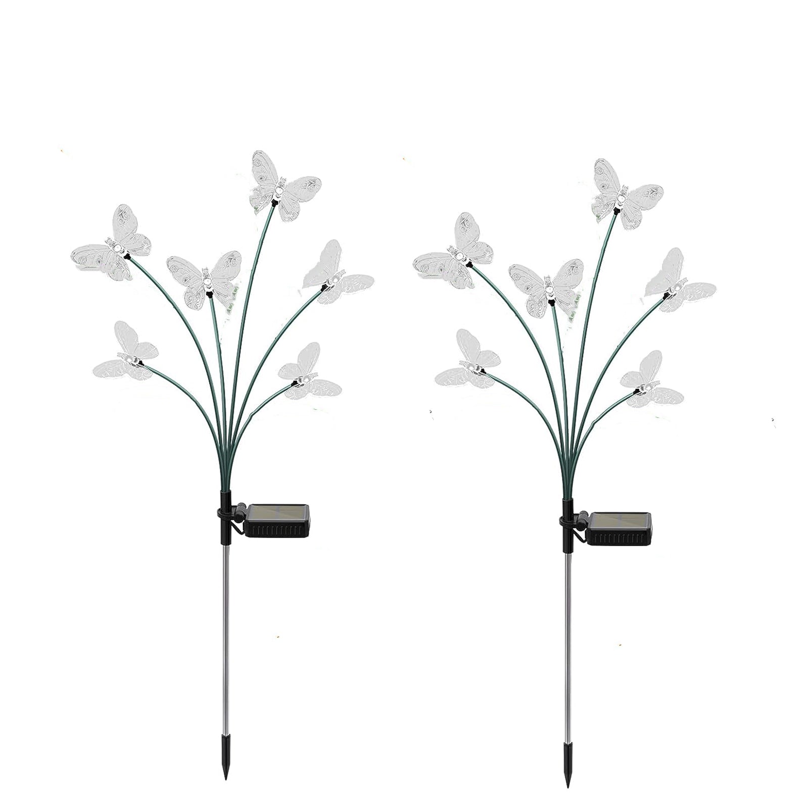 2Pcs Solar Lights Outdoor Garden 6LED Butterfly Landscape Stake Lights -Warm White