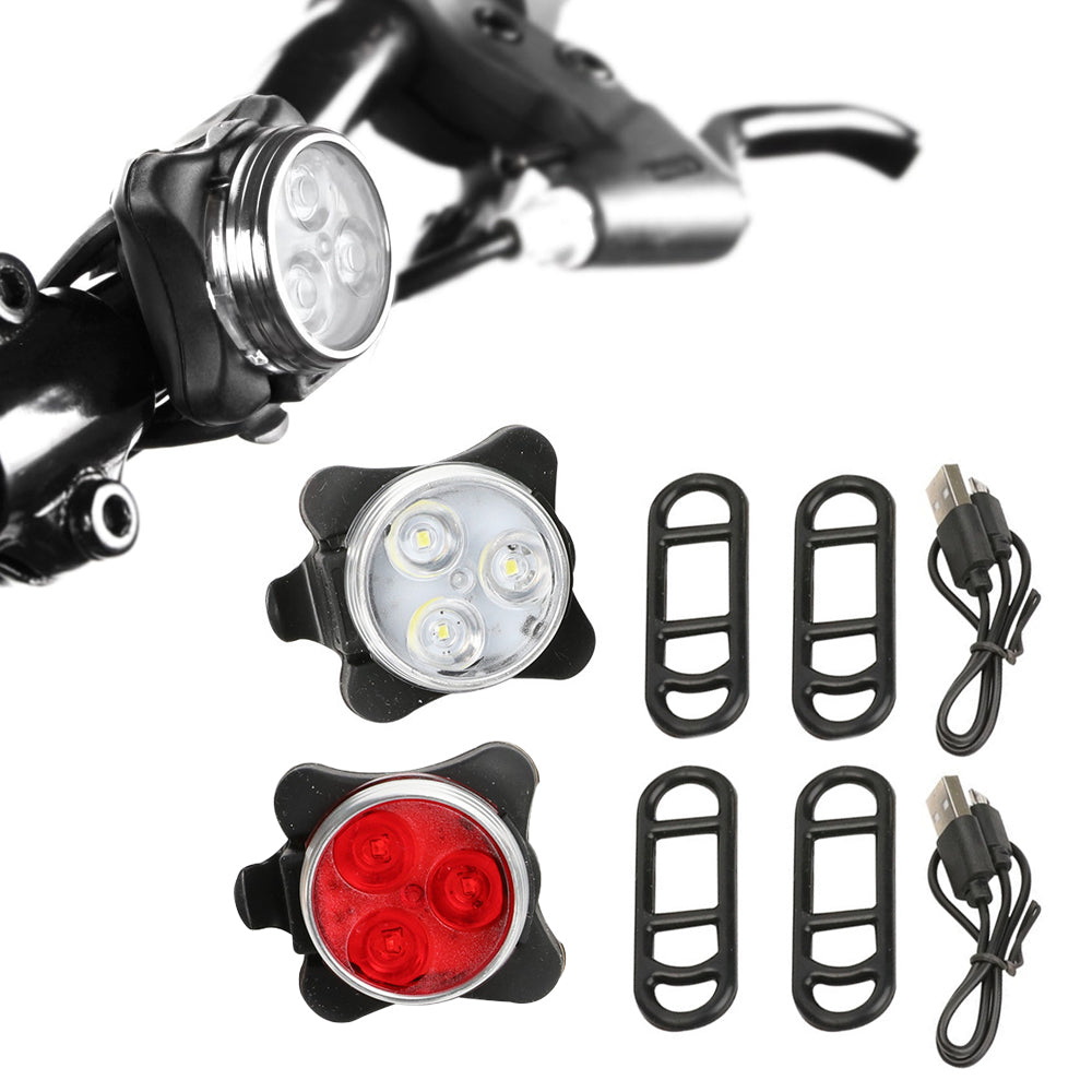 2Pcs USB Rechargeable Bike Lights LED Bicycle Lights Front and Rear Security Warning Lights