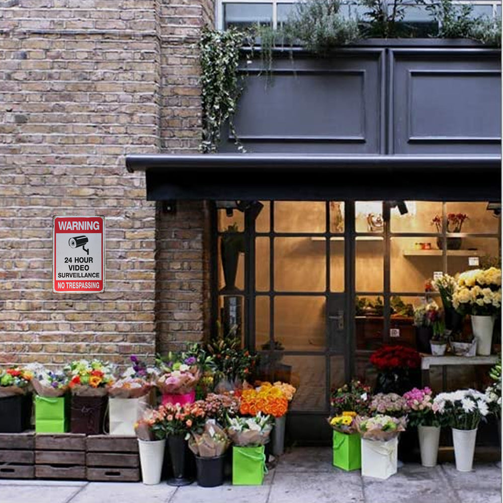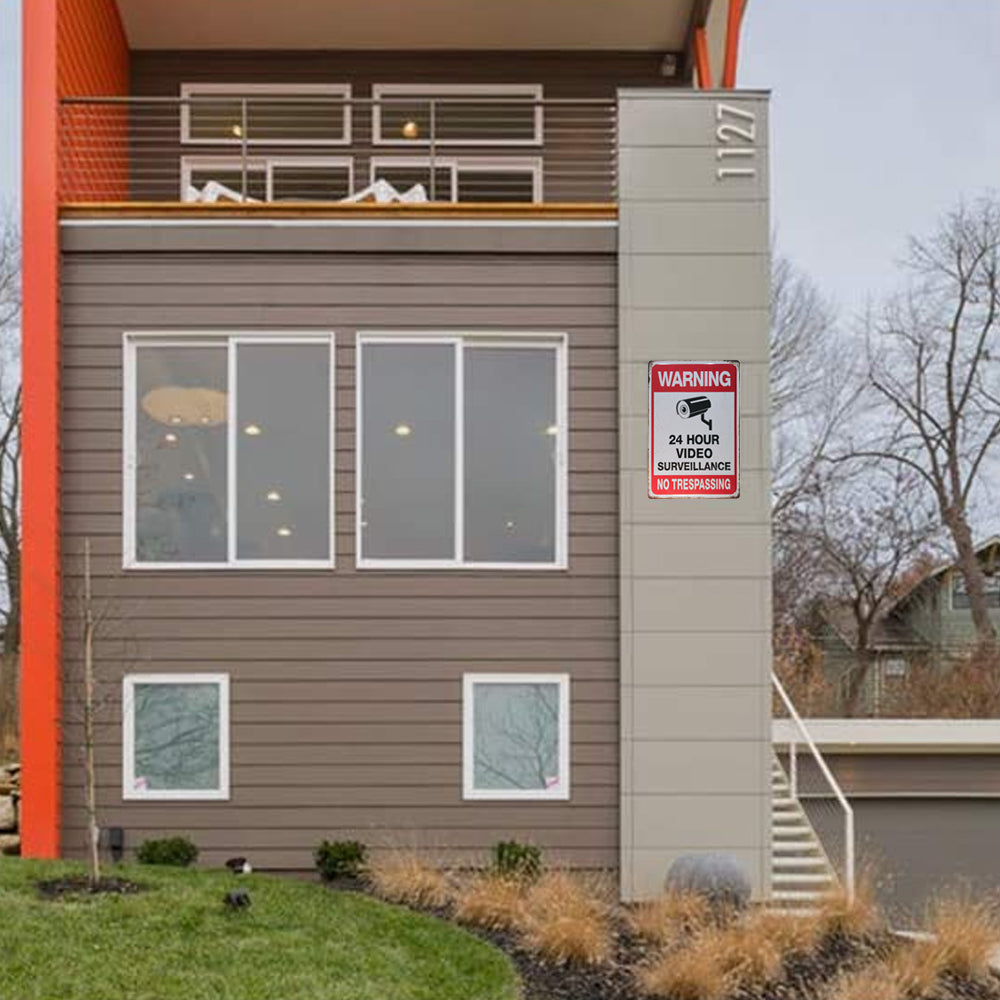 2Pcs Warning Sign 24 Hour Video Surveillance Sign for Home Business CCTV Security Camera