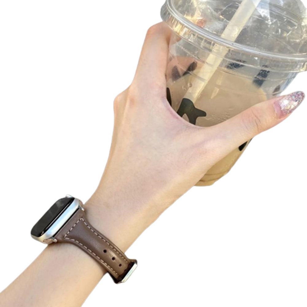 2X Leather Watch Band Compatible with Apple iWatch 38mm 40mm 41mm Black Dark Brown
