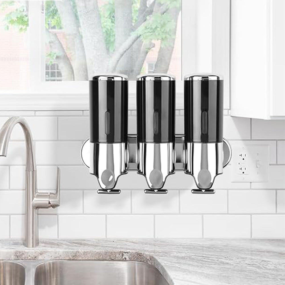Upgrade your bathroom or kitchen with this sleek and durable 3-chamber stainless steel soap dispenser, designed for convenience and modern aesthetics, ideal for bathrooms, kitchens, or laundry rooms.