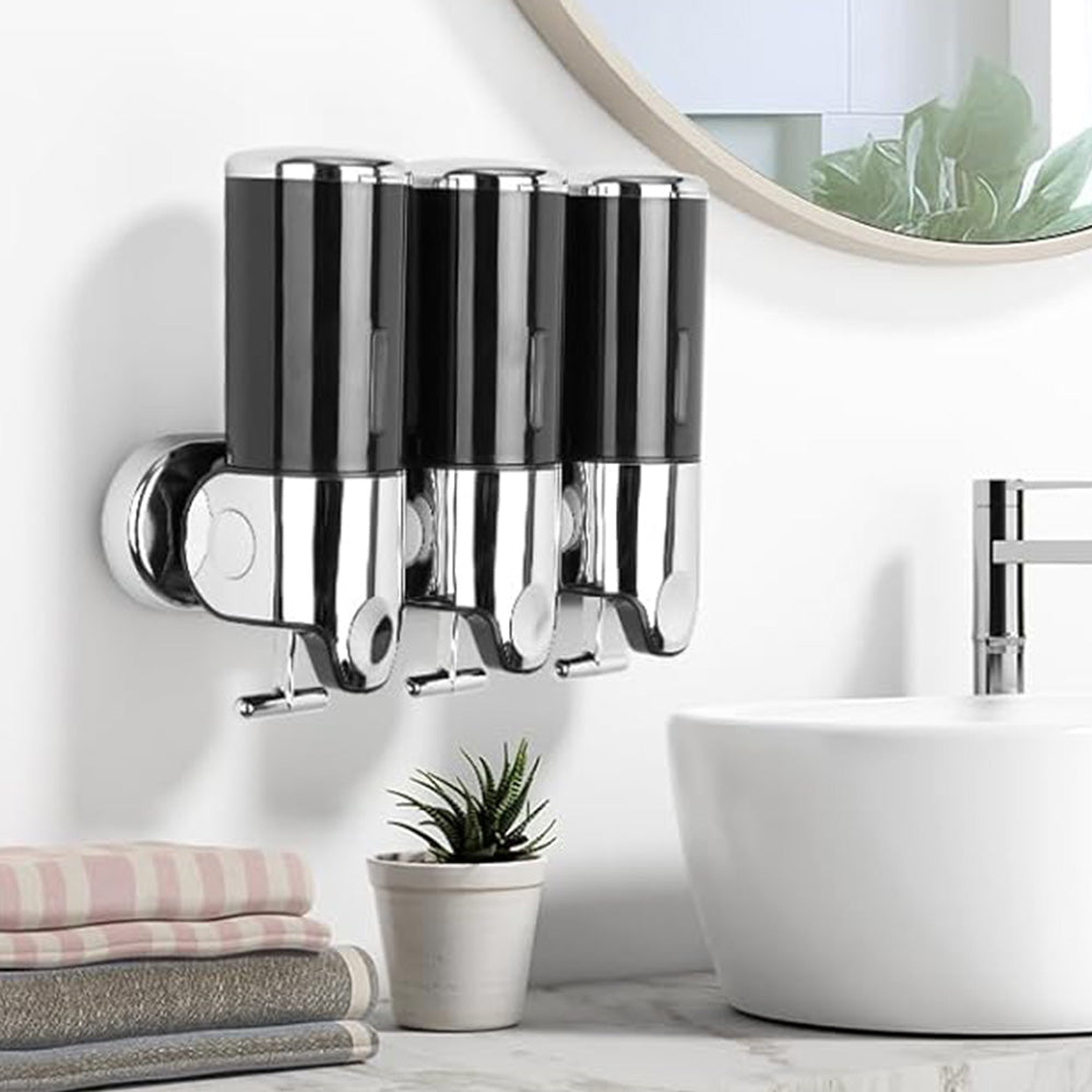 - Spacious 3-Chamber Capacity: Each chamber holds 500ml, providing ample storage for shampoo, conditioner, body wash, or other liquids. The wide refill opening and convex viewing window make it easy to monitor liquid levels.