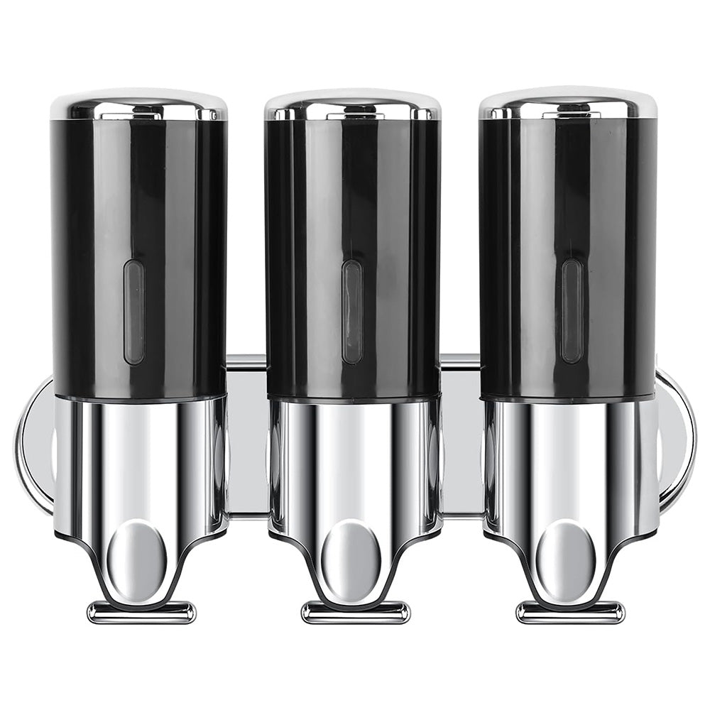 3-Chamber Shower Soap Dispenser Wall-Mounted Shampoo and Conditioner Dispenser with Visible Window Black