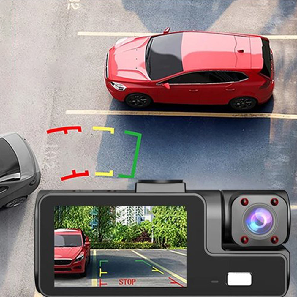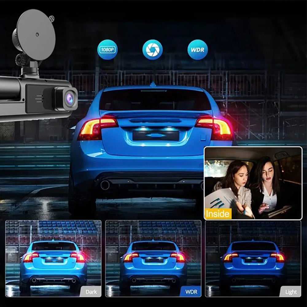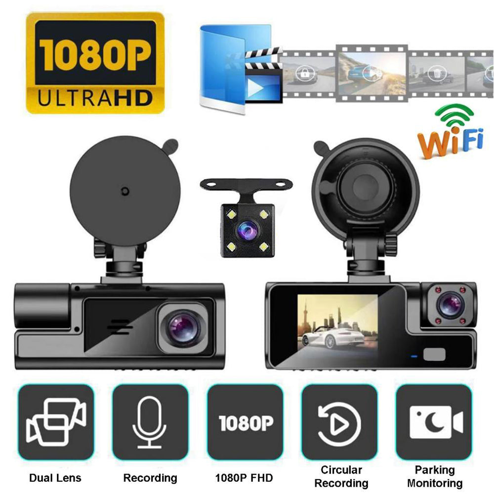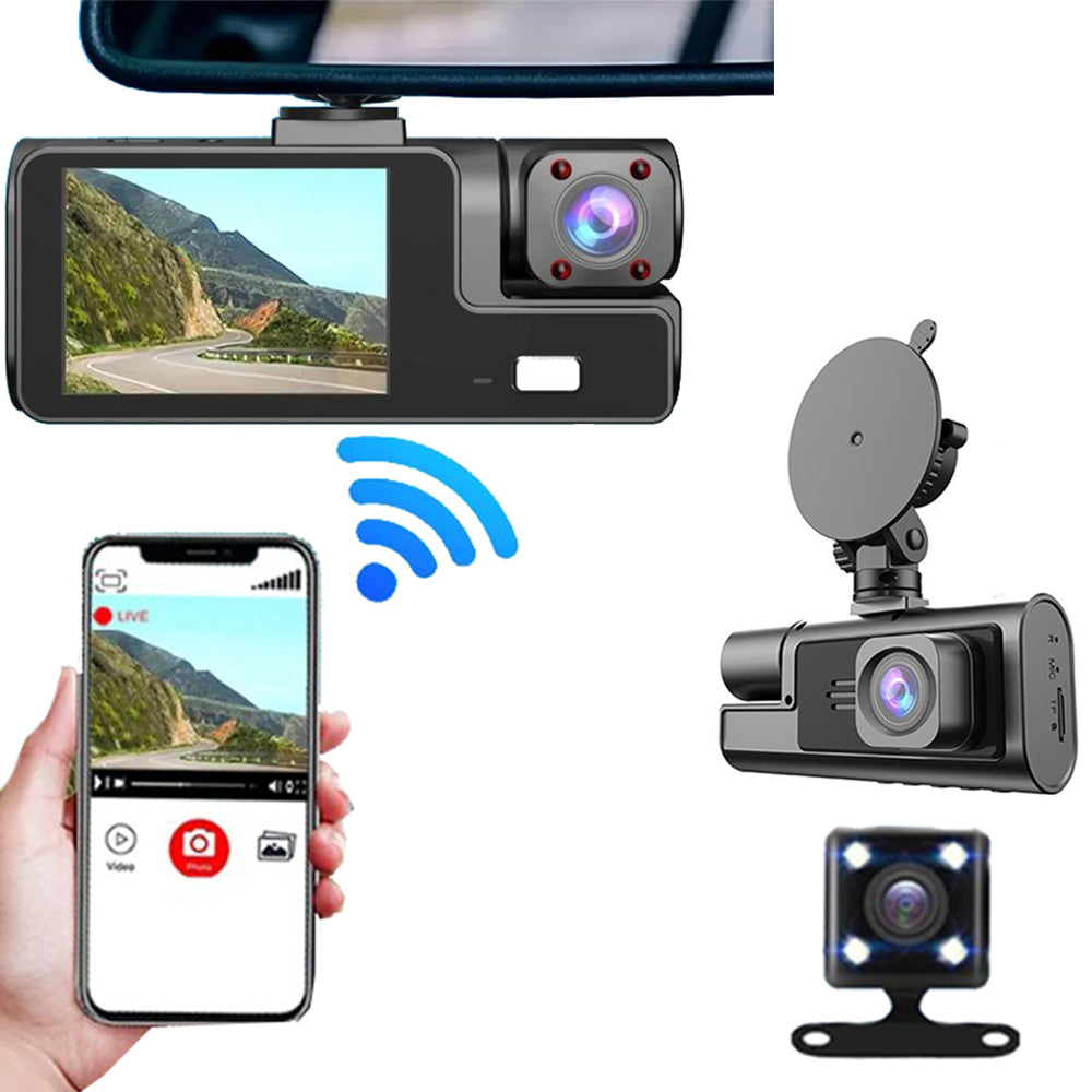 3 Channel Wi-Fi Dash Cam with Night Vision Front and Rear Dashcam