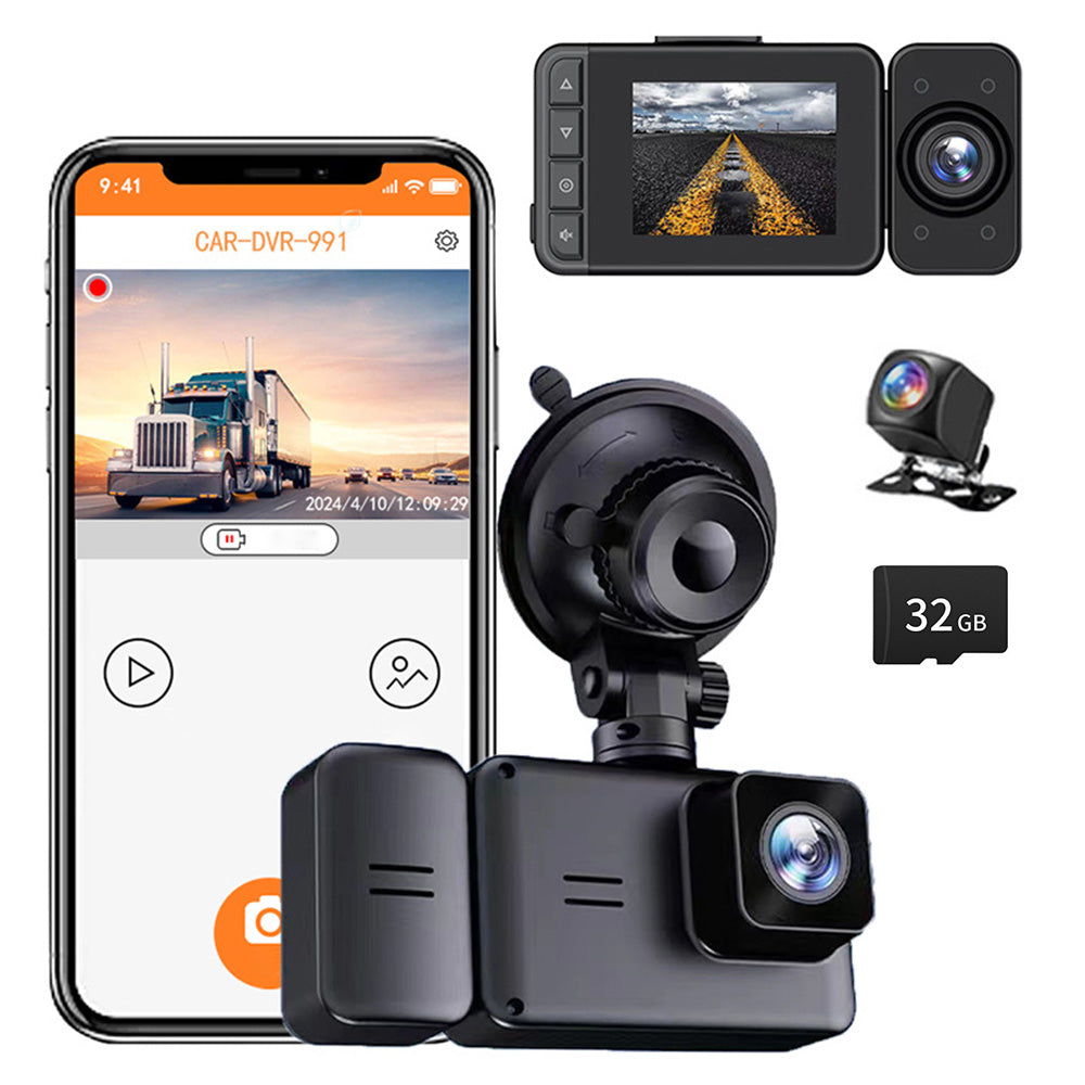 3 Channel WiFi Dashcam Front And Rear Night Vision Dash Camera with 32G Memory Card