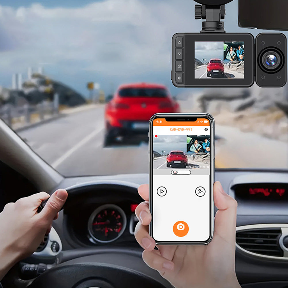 This dash cam monitoring your car's front, interior and rear simultaneously, it can captures crucial moments, safeguarding your vehicle against potential incidents and ensuring it is always secure, it's great for daily drivers and family trips.