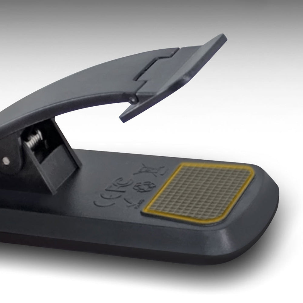 Non-Slip Clip and Base: The clip securely attaches to books, laptops, or desks with a maximum clip width of 4 cm. The base includes a battery indicator.
