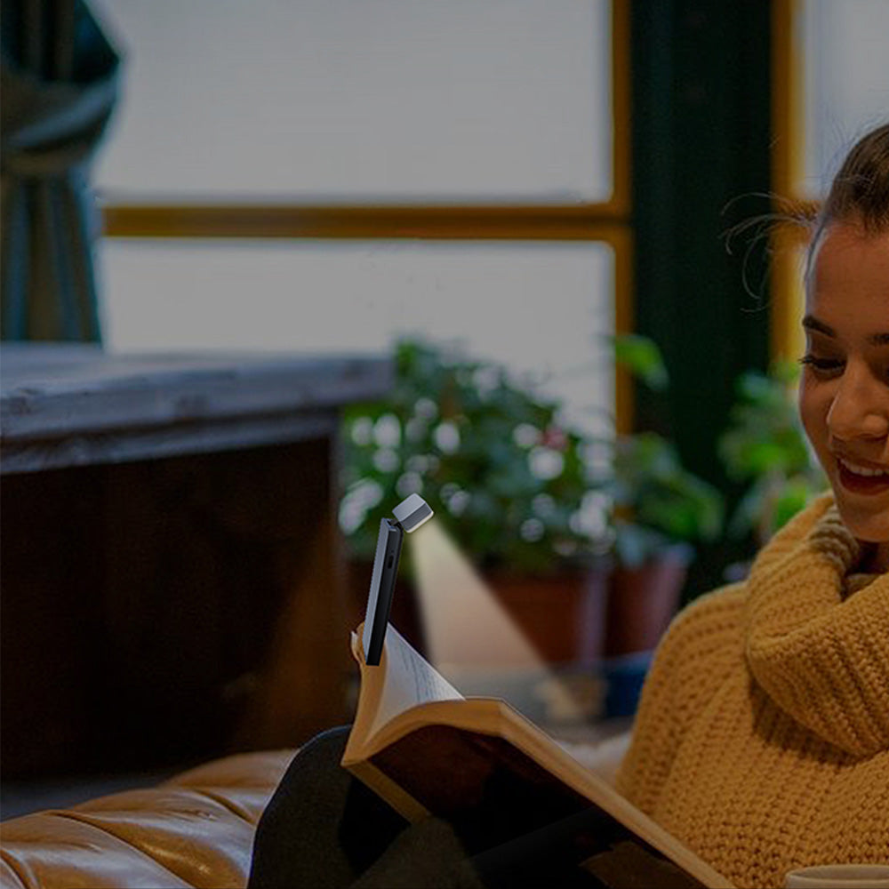 This rechargeable clip-on LED bookmark lamp offers 3 colors, 5 brightness levels, and adjustable lighting for easy reading.