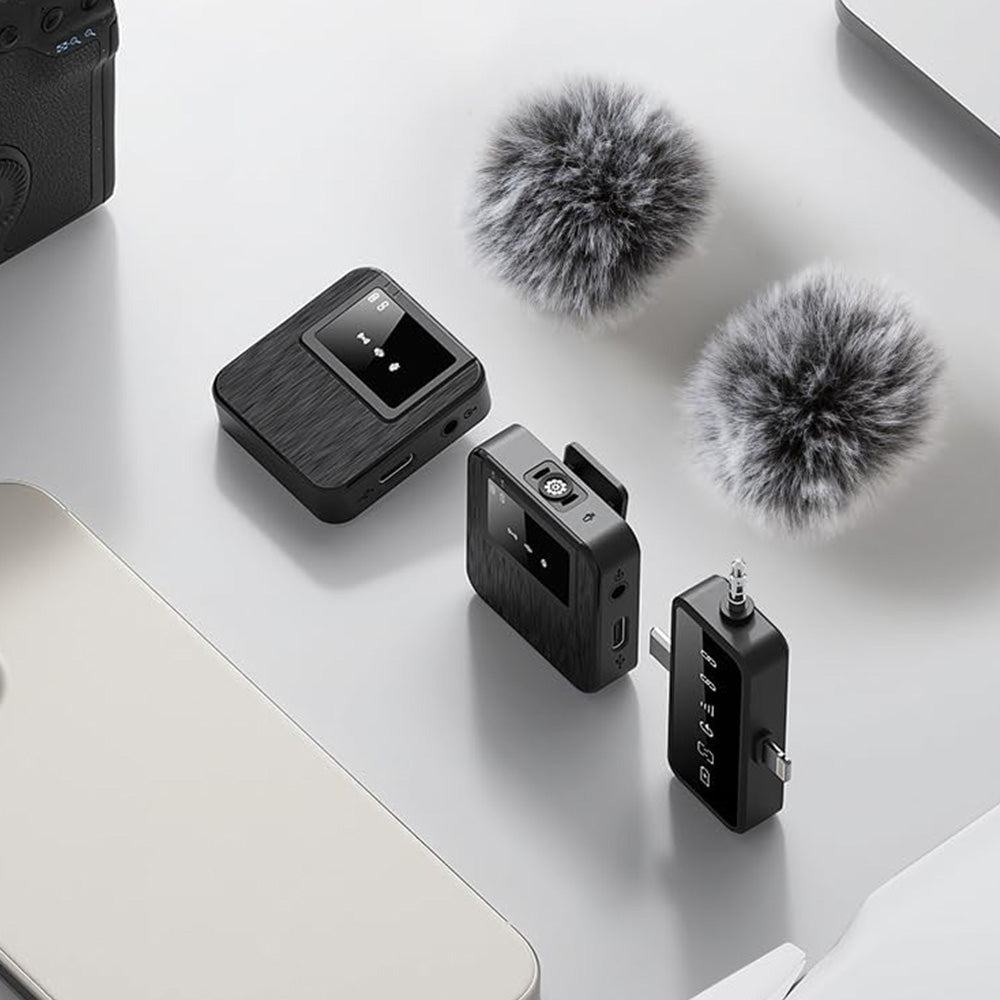 3-in-1 2.4G Wireless Lavalier Microphone Set Compatible with iPhone Android Device for Recording Live Streaming