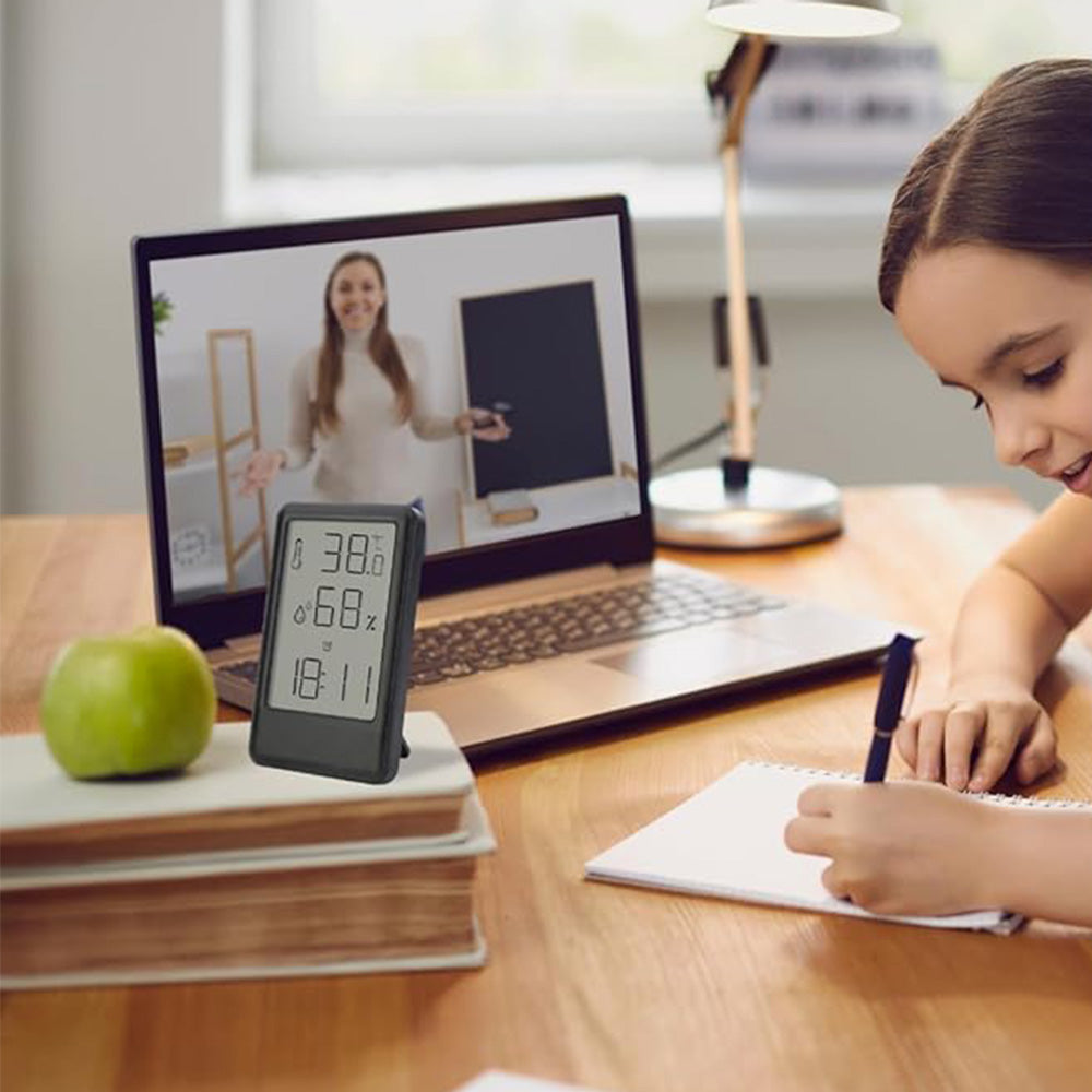 Keep track of your indoor environment with the 3-in-1humidity meter, a sleek and precise device that displays real-time temperature, humidity, and time.
