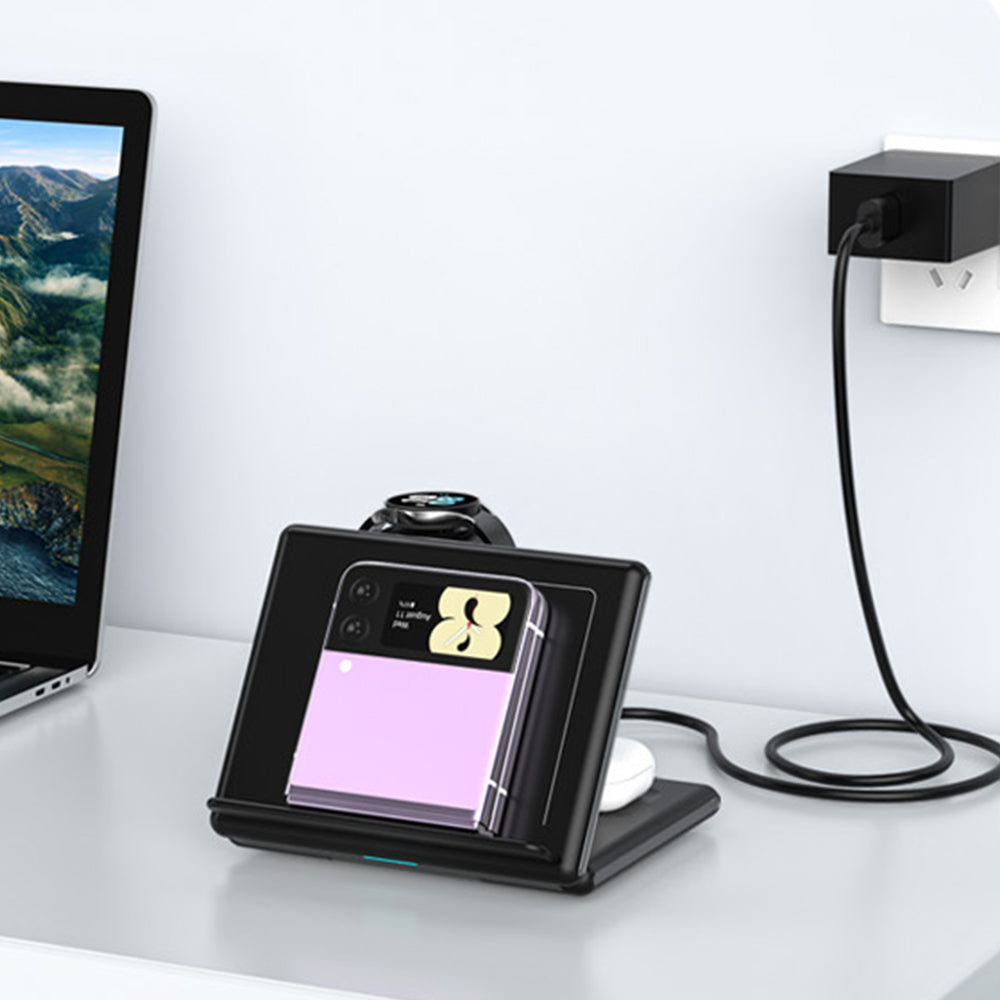 3-in-1 Foldable Wireless Charger with Watch Dock for Samsung Z Fold & Z Flip