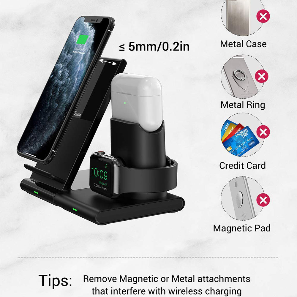 ??Case-Friendly?&?Sleep-Friendly??:?Charges?through?most?phone?cases?up?to?5mm/0.2in?thick,?no?need?to?remove?the?slim?case?from?your?phone.?Tips:?Remove?the?magnetic?or?metal?attachments?from?your?phone/phone?case;?Remove?the?incompatible?protective?case?from?the?iWatch?charging?case.