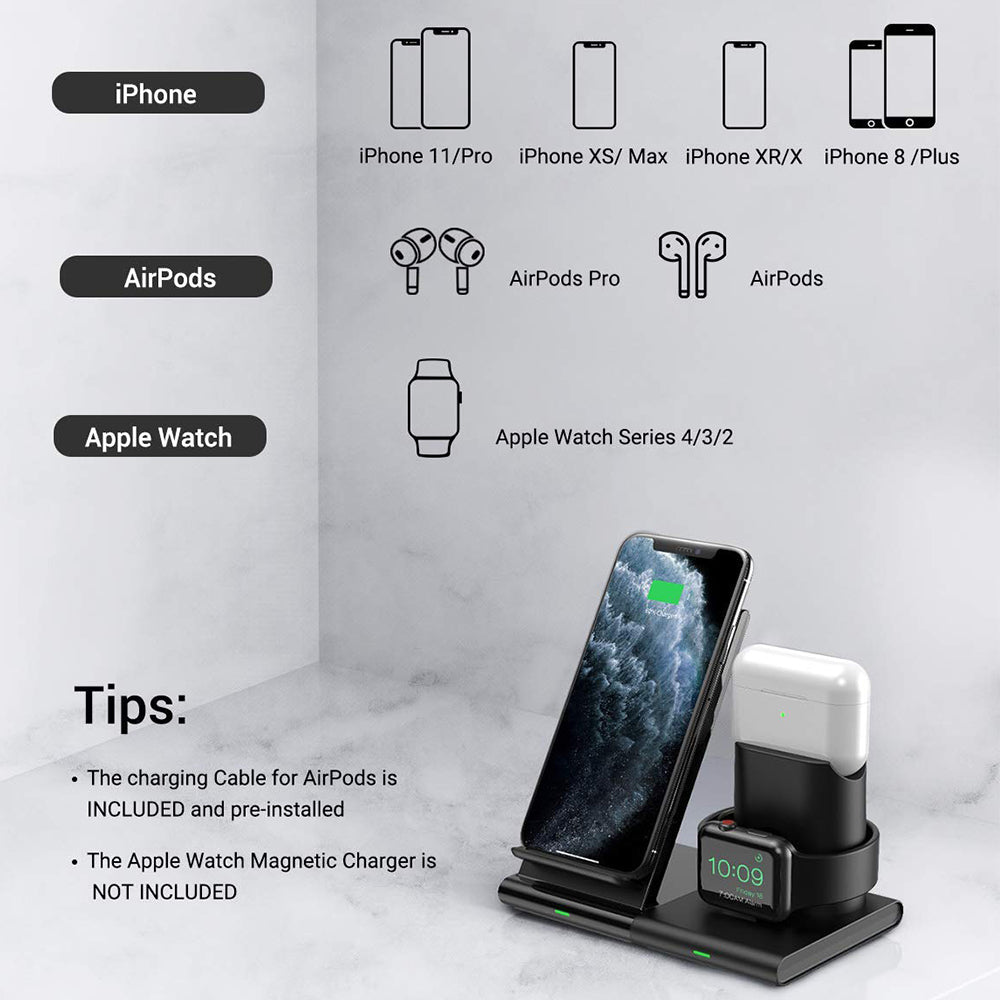 ??3-in 1?Wireless?Charging?Station??:?3?in?1?Wireless?Charging?Station?for?Apple?Watch?Series?1/2/3,?AirPods?Pro/AirPods/AirPods?2,?iPhone?Xs?Max/iPhone?XR/iPhone?XS/iPhone?X/iPhone?8/iPhone?8?Plus.