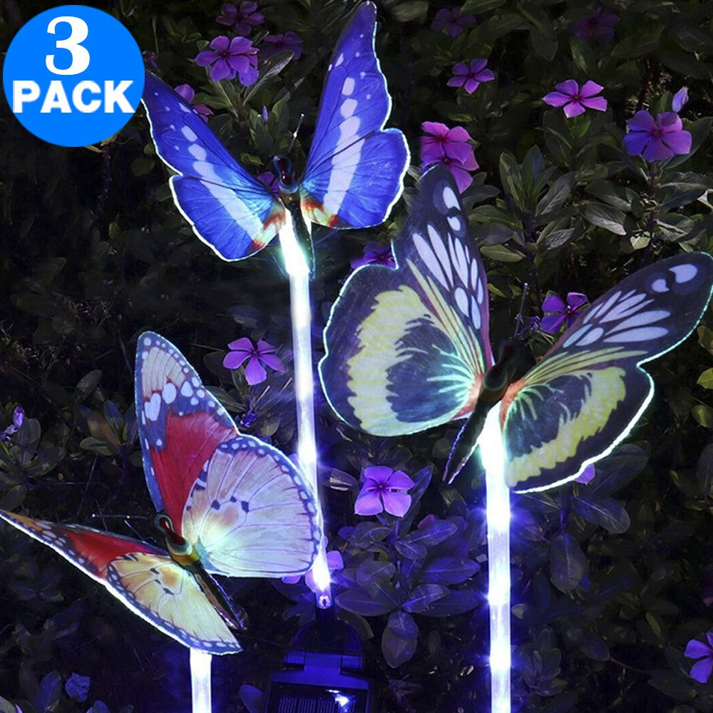 3 Pack Colour Changing 5 LED Butterflies Solar Landscape Lights