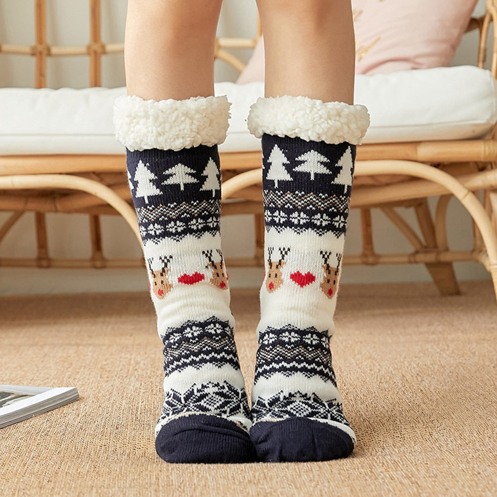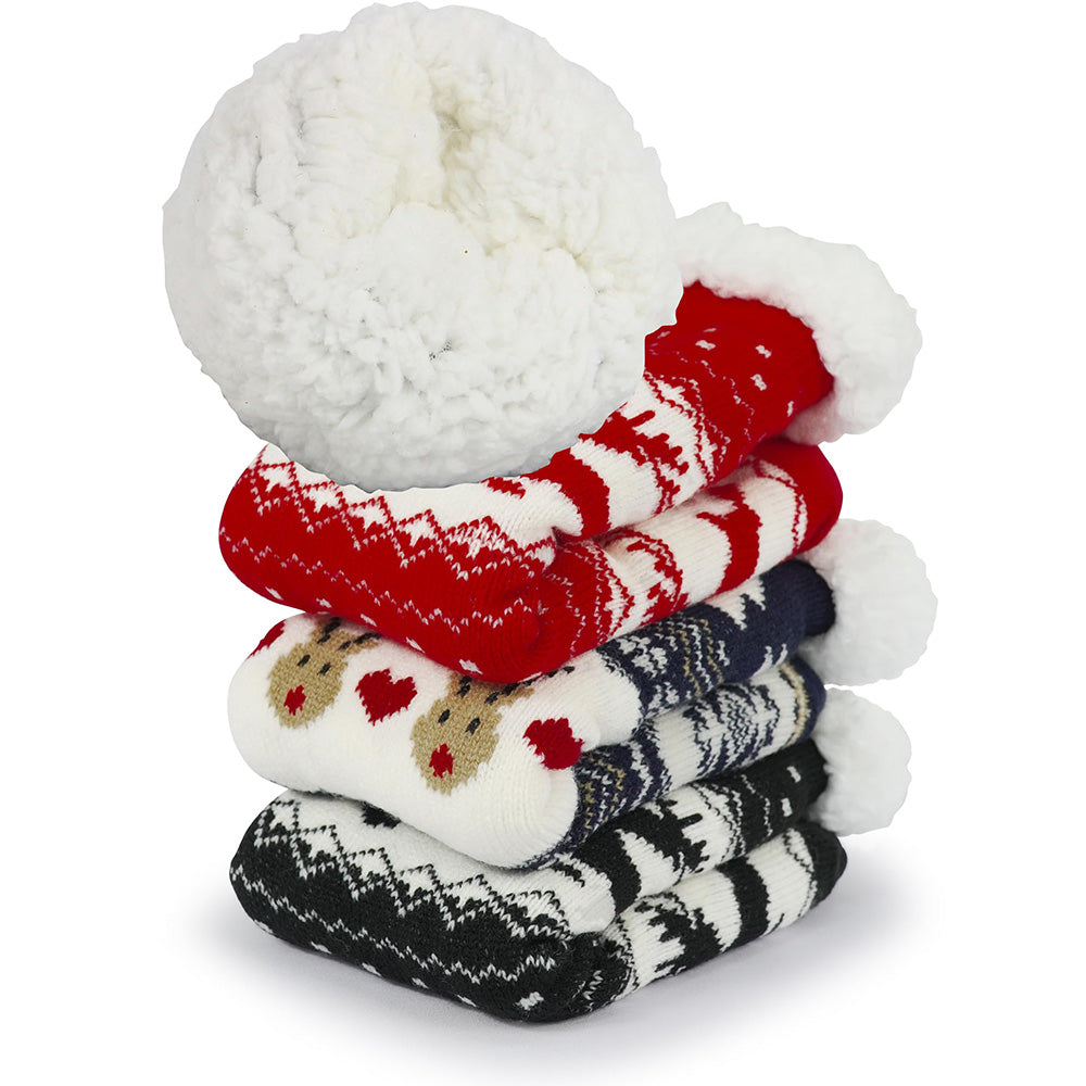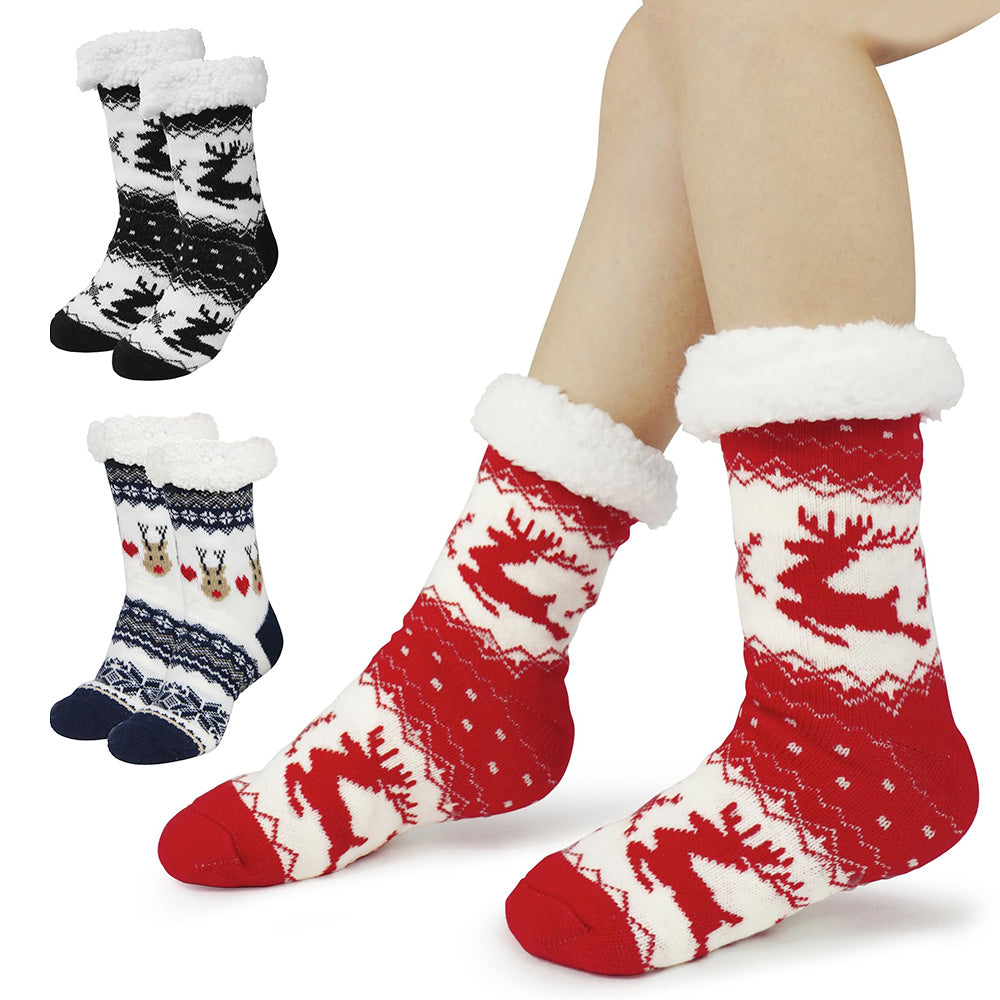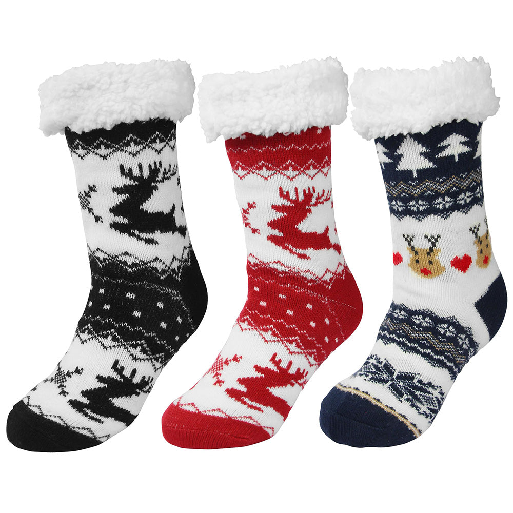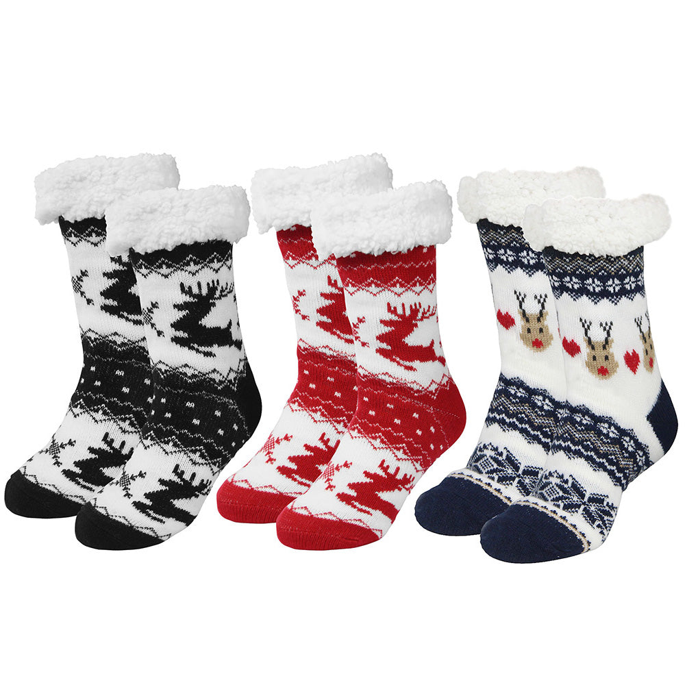 3 Pair of Christmas Non Slip Floor Socks for Women Cozy Plush Fleece Winter Warm House Socks