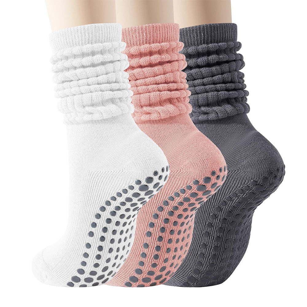 3 Pairs of Non-Slip Grips Yoga Socks Anti-Skid Knee-High Socks for Pilates Barre Dance Style 3