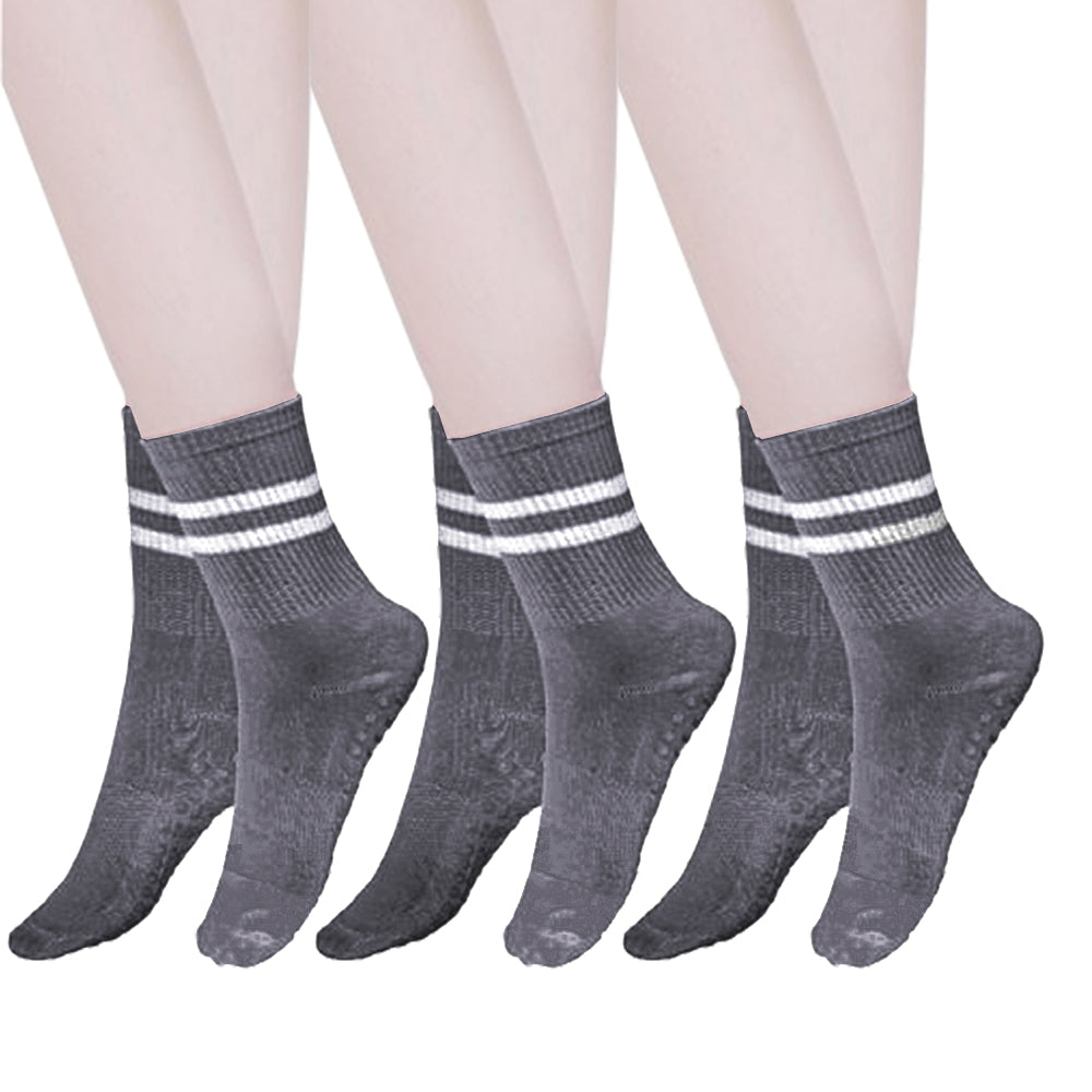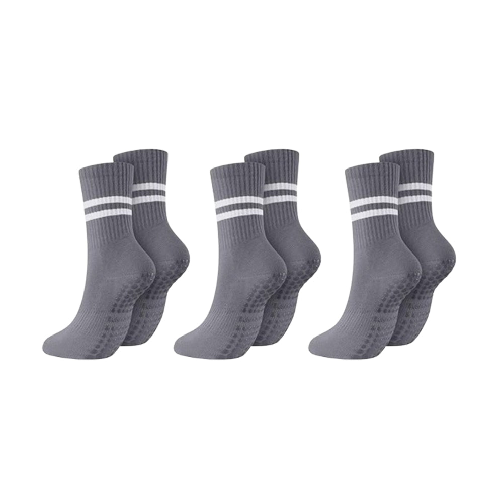 3 Pairs of Yoga Socks Non-Slip Grips Anti-Skid Pilates Barre Dance Cushioned Socks Grey
