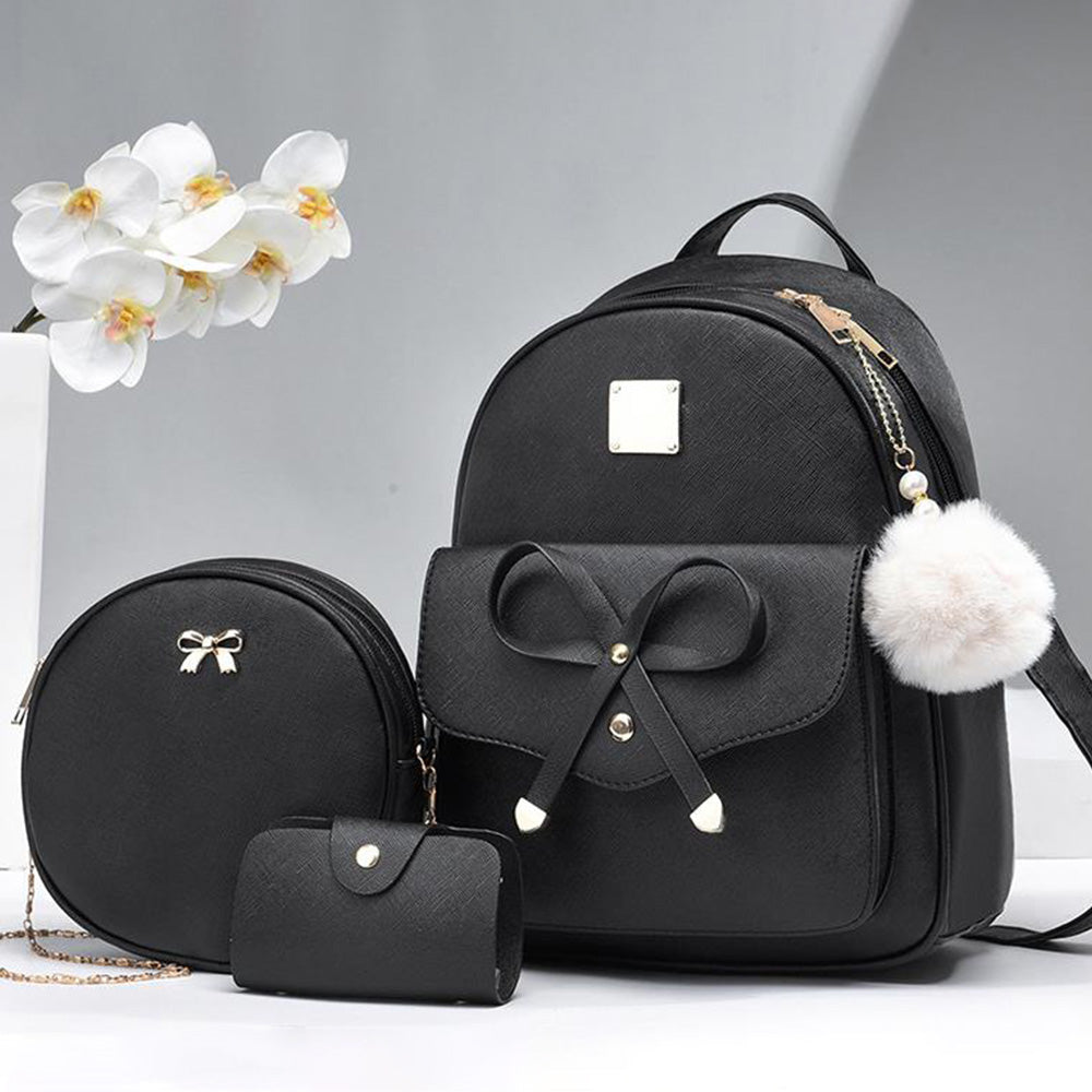 3 Pcs Set PU Bags Backpack Purse Sling Bag for Women Black