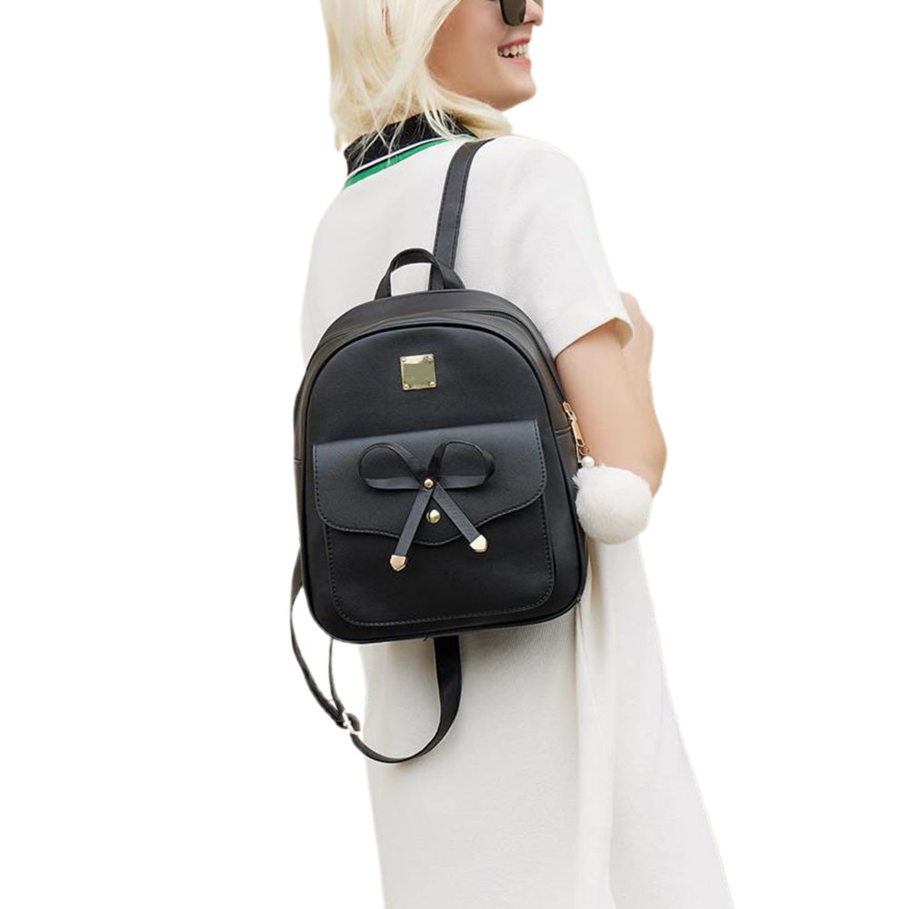 It's a stylish backpack characterized by its decorative bowknot and a faux fur ball pendant feature, which designed to hold your daily necessaries.