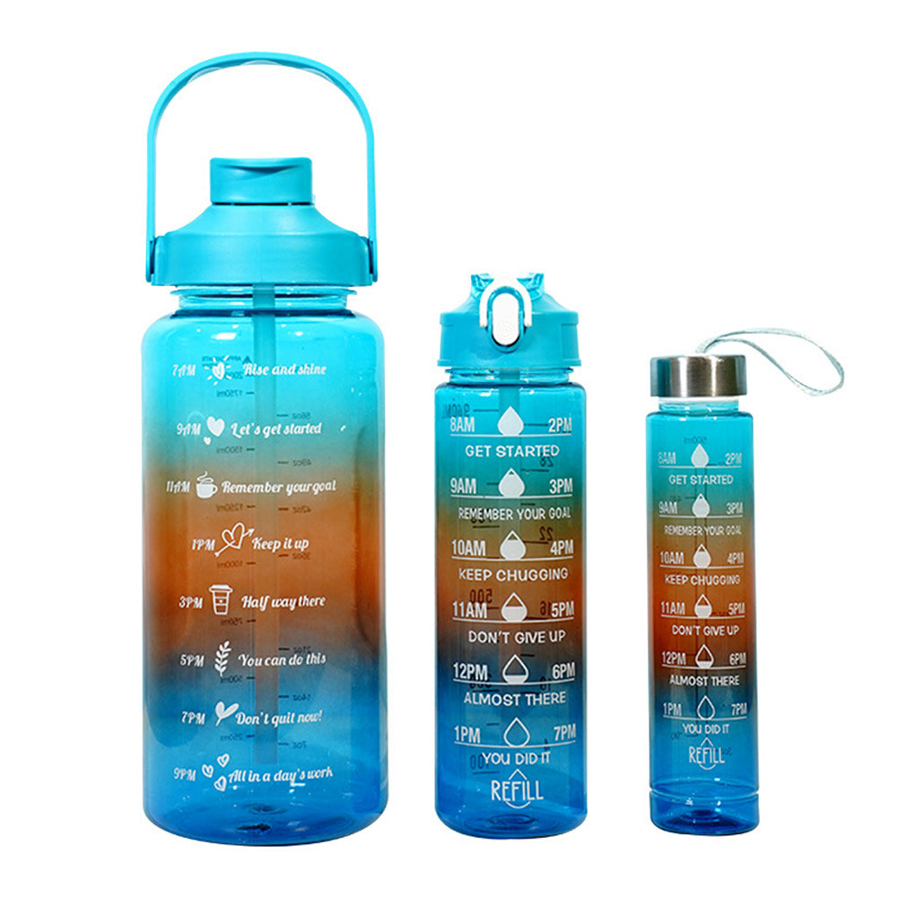 3-Piece Set Motivational Water Bottles Set Sports Drinking Bottle with Time Markings Blue