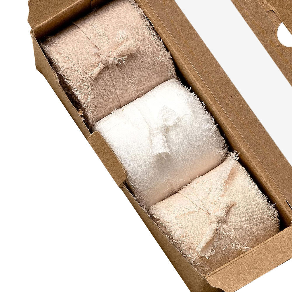 3 Rolls Fringe Chiffon Silk Ribbon Set Frayed Edges Ribbon Wedding Gifts Wrapping Decoration Style 2