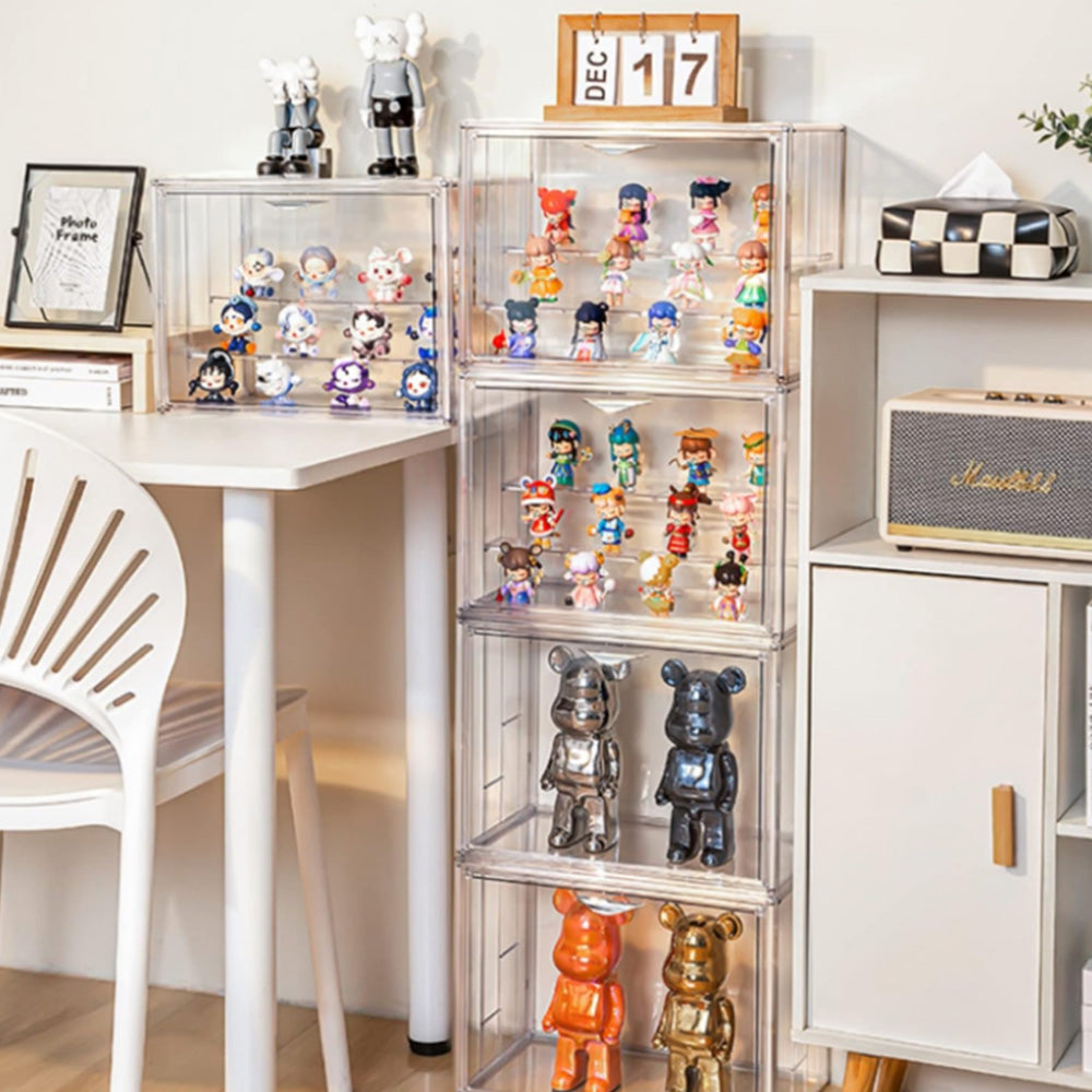 The show case with high transparent display rack to show your collectibles clearly without opening.