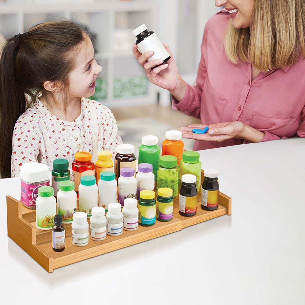 3-Tier Spice Rack Bamboo Expandable Display Shelf Kitchen Cabinet Organizer