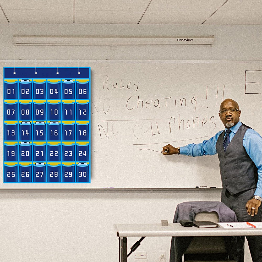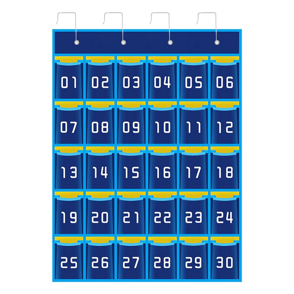 30 Pockets Numbered Pocket Chart Classroom Sundries Closet Hanging Organizer