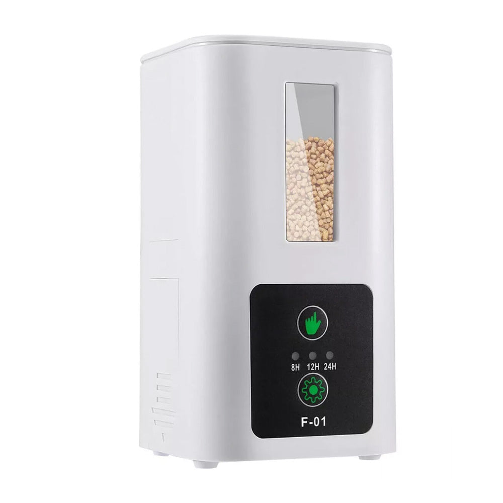 - Programmable to automatically dispense set portions of food every 8 hours, 12 hours, or 24 hours, making feedings convenient for everyday use or vacations.