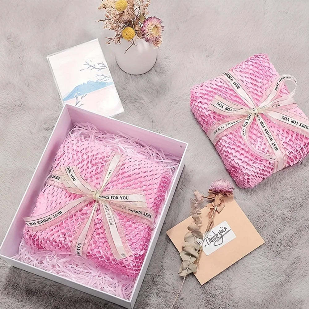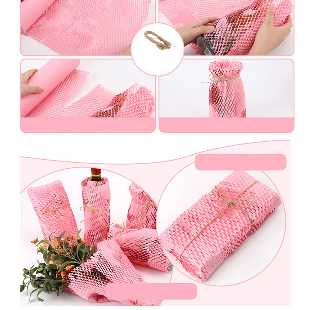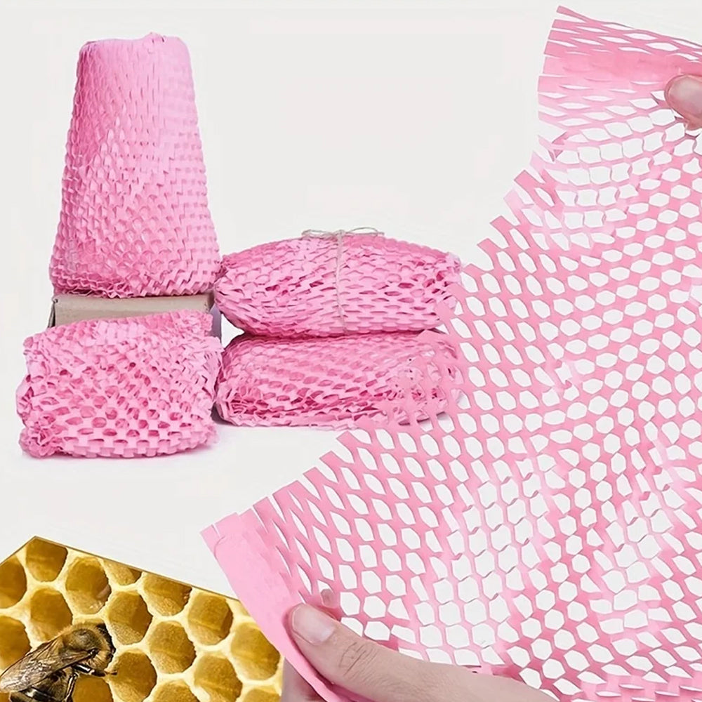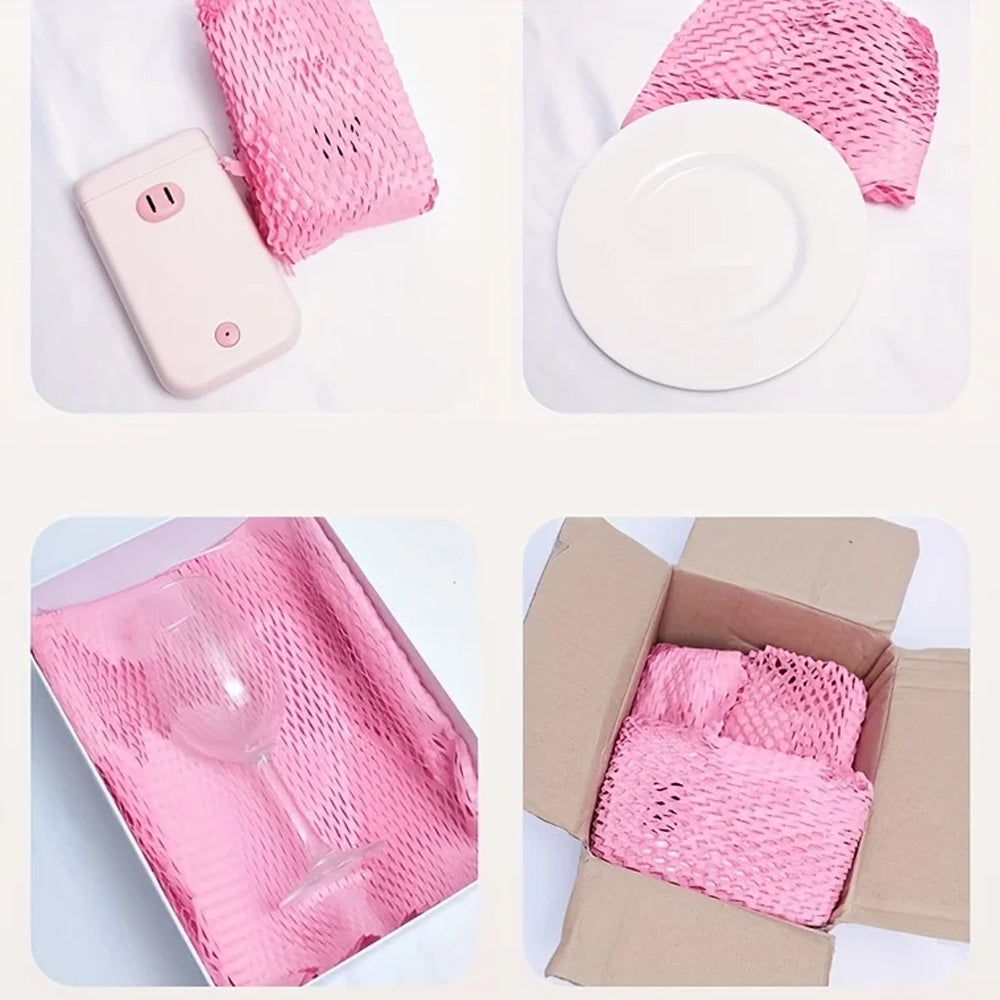 30M Honeycomb Packing Paper Recyclable Cushioning Packing Paper for Moving Wrapping Roll Pink
