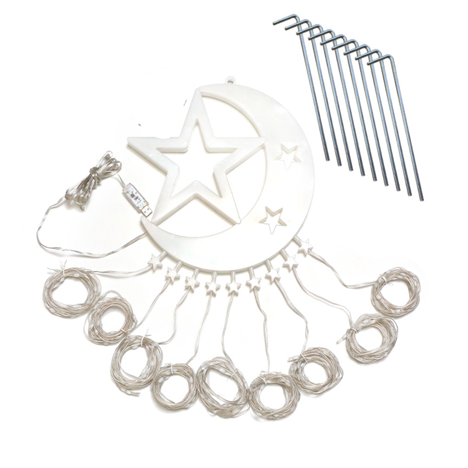 346LEDs Bluetooth App Control Lights Waterfall Tree Lights with Topper Star Crescent -Blue