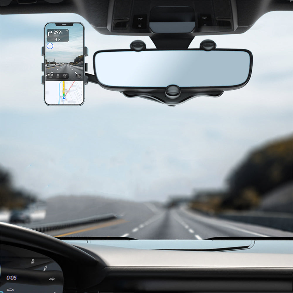 This car phone holder is mounted on the car's rearview mirror and levels with it to keep your eyes on the road. No need to look down at navigation, and get a more comfortable and safer user experience.