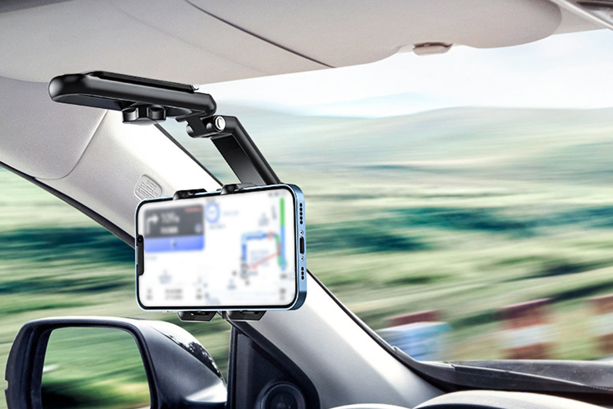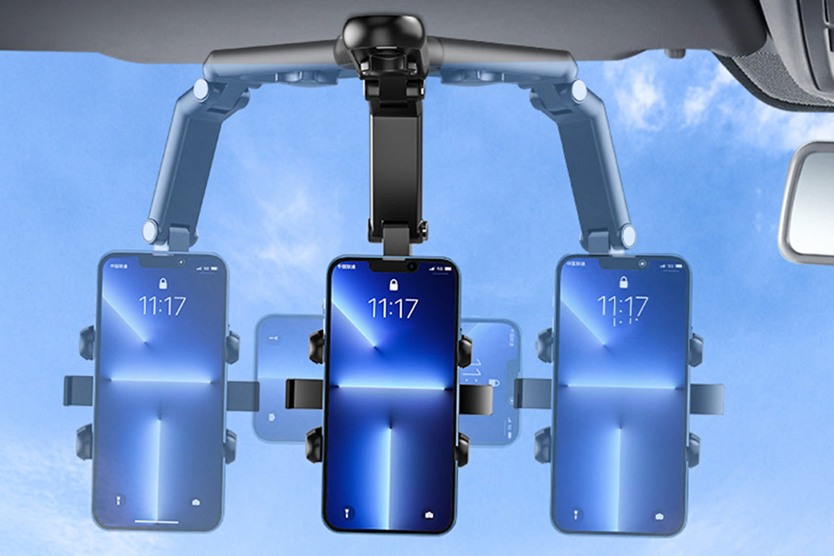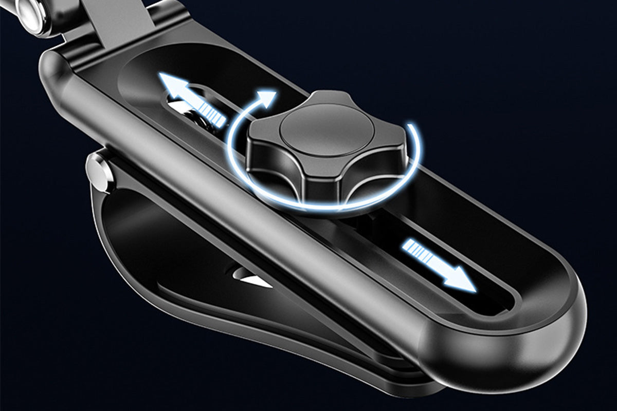- A next generation sun visor mounted phone holder featuring turbo self locking mechanism and multi axis adjustment for stable hands free viewing in vehicles or at home.
