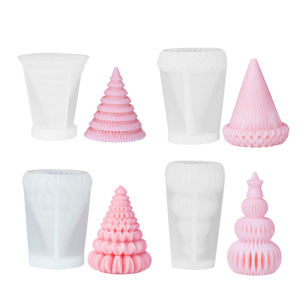 4 Pieces 3D Christmas Tree Candle Mold Plaster Soap DIY Silicone Mould Making