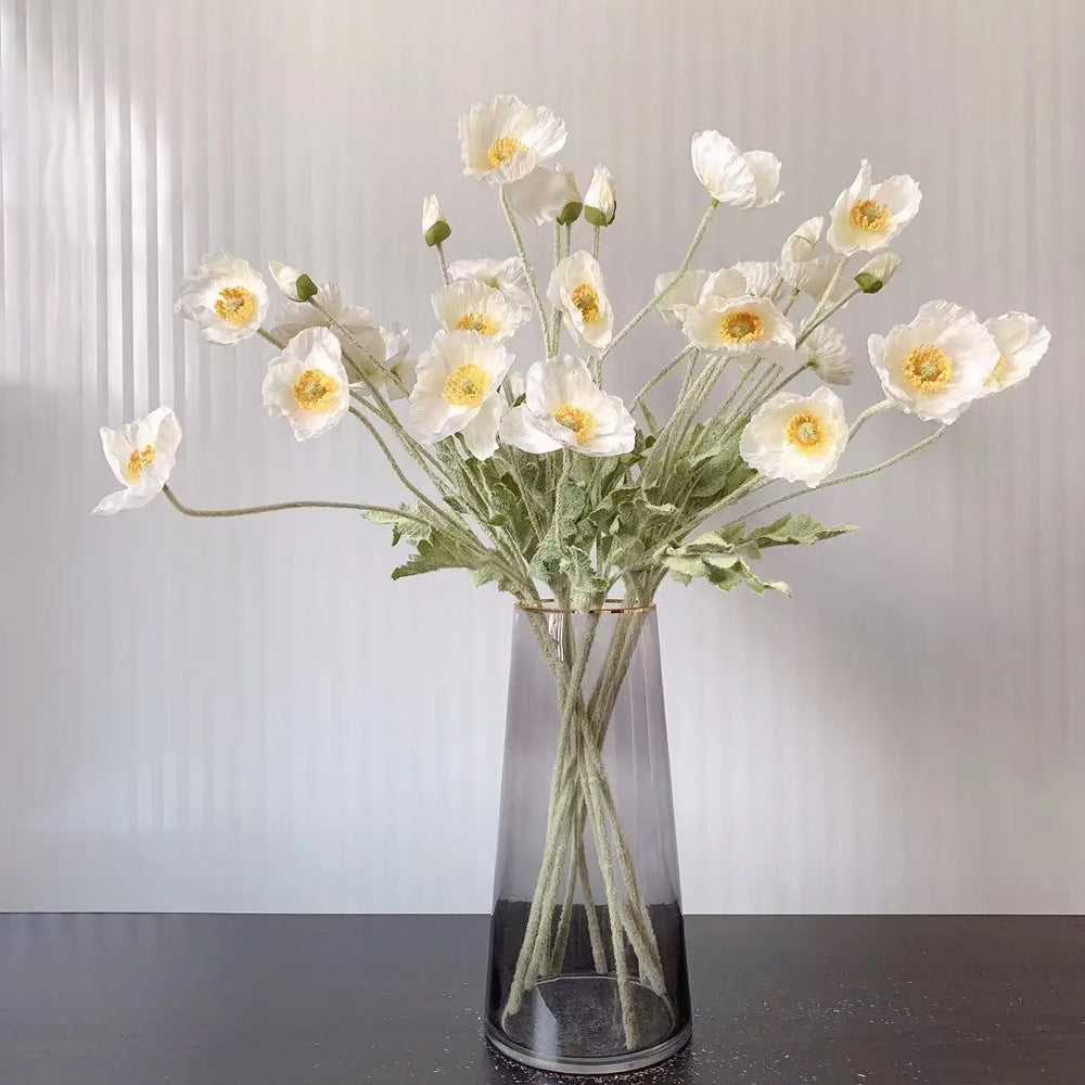 - Each artificial poppy flower features three flowers and one bud on each stem.