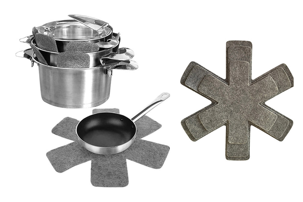 Designed to protect your cookware from scratching, this set of 3-pieces pot and pan protector features non-slip and easy cleanup.