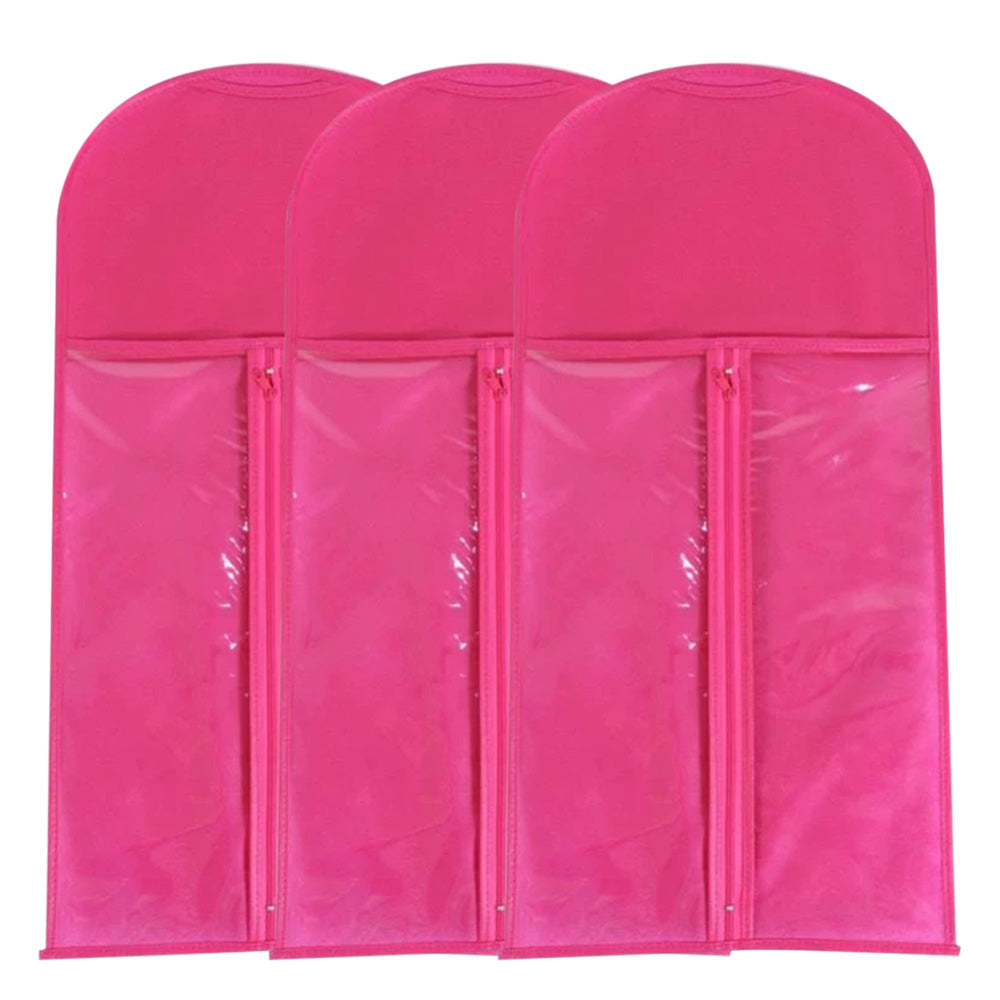 3Pcs Hair Extension Storage Bags with Hangers Dustproof Non-Woven Fake Hair Organizer Rose Red